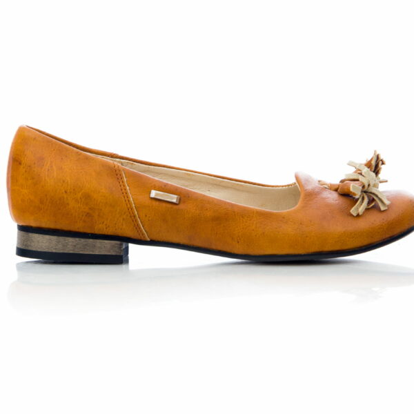 eleganckie głębokie baleriny na obcasie - skóra naturalna - model 009 - kolor rudy retro