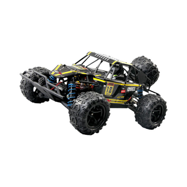 Funkcje:Napęd 4WDPrędkość 40 km/hSterowanie 2,4 GHzNiezależne zawieszenie na wszystkie koła w 4WDZasięg kontrolera 60mOpona z bieżnikiem terenowymOświetlenie LED przódWytrzymała obudowa/klatka zewnętrznaWymiary: 29cm x 19cm x 13cmKolor: czarno - żółtyNapęd na cztery koła (4WD)Napęd na cztery kola pozwala zachować doskonałą przyczepność na każdym podłożu oraz zapewnia lepsze przyspieszenie.Prędkość do 40 Km/hSamochód osiąga zawrotną prędkość 40 Km/h w ciągu 0,5 sekundy.Sterowanie 2,4 GHzKomunikacja między kontrolerem a samochodem realizowana w częstotliwości 2,4 GHz gwarantuje odporność na zakłócenia i nie przerwaną zabawę.Niezależne zawieszenie na wszystkie kołaNiezależne zawieszenie każdego koła pozwala pokonać każdą przeszkode na drodze.W zestawie:SamochódKontroler zdalnego sterowania 2,4GHzPrzewód ładowania USBAkumulator 7,4V 850mAHInstrukcja obsługiOryginalne opakowanieChcesz dowiedzieć się więcej? Obejrzyj film!Samochód zdalnie sterowany z napędem na cztery koła dający niesamowite doznania każdemu kierowcy w wieku od 3 do 99 latSpecyfikacja techniczna:Skala: 1:18Napęd: 4WDPrędkość: do 40km/hObudowa: PCVCzas jazdy: do 25 minutCzas ładowania: 120 minutWymiary: 290mm*190mm*130mmmWaga: 690,4 gCzęstotliwość kontrolera pracy: 2,4GHzZasięg nadajnika: 60mOświetlenie: LED, przódZasilanie: Akumulator 7,4V 850mAH Samochód, Kontroler sterowania DC 3 x 1,5V AA