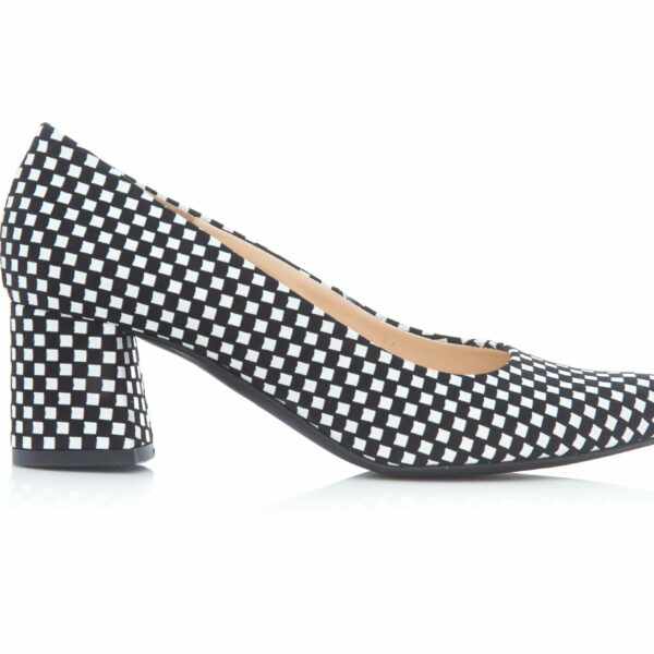 czółenka na klocku - skóra naturalna - model 1368 - kolor czarna szachownica