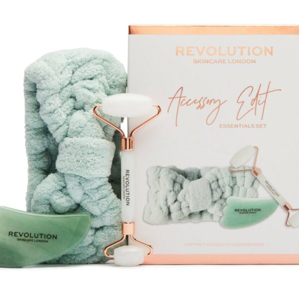 Revolution Skincare Accessories Edit The Essentials Kit Zestaw Akcesoriów Do Pielęgnacji Jak co roku marka Revolution Skincare przygotowała wiele zjawiskowych zestawów kosmetyków i akcesoriów idealnych na prezenty świąteczne dla najbliższych. W przyciągających wzrok, czarujących opakowaniach zamknięto najwyższej jakości produkty, które zachwycą obdarowaną osobę. Revolution Skincare Accessories Edit The Essentials Kit Zestaw Akcesoriów Do Pielęgnacji który idealnie spisze się jako pomocnik do pielęgnacji twarzy. Niezależnie od tego, czy jesteście największymi fanami pielęgnacji skóry, czy dopiero zaczynacie Revolution Skincare Accessories Edit The Essentials Kit zawiera wszystkie potrzebne akcesoria. Od masażu twarzy po opaskę na głowę, która będzie idealnym dodatkiem do każdej codziennej pielęgnacji skóry, ten wszechstronny produkt z pewnością Cię zadowoli.W skład tego kozackiego zestawu Revolution Skincare Accessories Edit The Essentials Kit wchodzą następujące produkty: Revolution Skincare Aventurine Gua Sha Kamień Do Masażu Twarzy -> Masaż twarzy naturalnymi kamieniami wywodzi się z chińskiej medycyny tradycyjnej. Według niej poszczególne minerały mają różne oddziaływanie na człowieka, a masaż kamieniami zmniejsza opuchliznę i cienię pod oczami. Ponadto w połączeniu z ulubionym olejkiem, serum czy maseczką w płachcie wzmocni i przyspieszy działanie kosmetyku.Revolution Skincare Biały Roller Masażer Do Twarzy -> Niezbędny w codziennej pielęgnacji skóry wałek pomaga stymulować krążenie krwi, jednocześnie pomagając we wchłanianiu masek i serum.Revolution Skincare zielona opaska na głowę -> Ta elegancka opaska utrzymuje włosy na swoim miejscu i zapobiega zakłócaniu rutyny pielęgnacji skóry przez warkocze.Zestaw Revolution Skincare jest idealnym pomysłem na prezent dla każdej osoby, która pasjonuje się makijażem - dziewczyny, przyjaciółki, siostry, mamy czy córki... czy samej siebie.Nie masz pomysłu na prezent? Revolution Skincare Accessories Edit The Essentials Kit Zestaw Akcesoriów Do Pielęgnacji to marzenie każdej osoby. Dobra wiadomość: ten produkt posiada certyfikat niezależnych organizacji zajmujących się dobrostanem zwierząt, który zapewnia o tym, że nasi futrzani i pierzaści przyjaciele są traktowani tylko z życzliwością.Kosmetyki znajdujące się w zestawie są warte około 150ZŁ!
