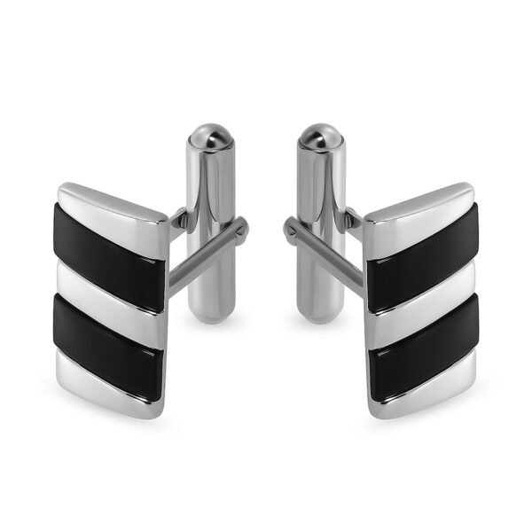Spinki do mankietów srebrne w czarne pasy 925S (SP-000073)