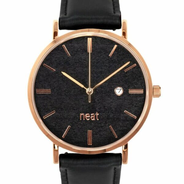 Rodzaj zegarka: MęskiPasek / bransoleta: PasekMechanizm: KwarcowyFunkcje: DataKształt koperty: OkrągłaKolor tarczy: CzarnyKolor paska: CzarnyKolor koperty: ZłotyOpis tarczy: IndeksyMateriał wykonania: Stal szlachetnaWodoszczelność: 3 ATMSzkło: MineralneKamienie: Bez kamieni