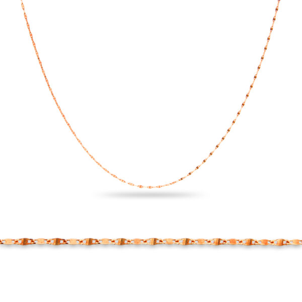 Długość obwodu łańcuszka: 42 cmRodzaj splotu: gucci / marinaSzerokość splotu łańcuszka: 1,1 mmPróba złota: 585ŁAŃCUSZEK 42 CM SPLOT GUCCI - PIĘKNA BIŻUTERIASplot gucci, znany także pod określeniem marina, to fantazyjne, owalne ogniwa, których środek przedzielony jest na dwie części, łączące się z kolejnymi ogniwami. Modele z drobniejszymi ogniwami są popularne wśród kobiet (także z zawieszkami), natomiast wersje masywniejsze często kupowane są przez Panów.ZŁOTY ŁAŃCUSZEK GUCCI O DŁUGOŚCI 42 CM - NUTA MARYNISTYKIDelikatny (szerokość splotu 1,1 mm) złoty łańcuszek 42 cm ze splotem gucci będzie świetnie prezentował się na kobiecej szyi. Poniżej prezentujemy przykładową kobiecą wizualizację łańcuszka o tej długości. Pamiętaj, że rzeczywiste ułożenie łańcuszka będzie zależało od wzrostu i budowy ciała osoby, dla której łańcuszek jest przeznaczonyPrzykładowa kobieca wizualizacja złotego łańcuszka o długości 42 cmDOBIERZ ŁAŃCUSZEK WG RODZAJU SPLOTU I DŁUGOŚCIAby maksymalnie ułatwić Ci wybór o