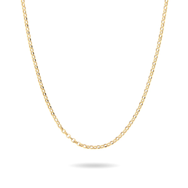 Długość obwodu łańcuszka: 45 cmRodzaj splotu: roloSzerokość splotu łańcuszka: 1,7 mmPróba złota: 585Wypełnienie ogniw: dmuchane (puste w środku)SPLOT ROLO - SUBTELNA, KLASYCZNA BIŻUTERIASplot rolo to prawdziwa klasyka - okrągłe ogniwa połączone poprzecznie, pod kątem 90 stopni. Łańcuszki z tym splotem są bardzo popularne - zarówno wśród Pań, jak i Panów. Pięknie odbijają światło i dobrze układają się na szyi. Łańcuszki rolo o drobnych ogniwach noszone są także z zawieszkami, te grubsze lepiej wyglądają bez dodatków.ZŁOTY ŁAŃCUSZEK ROLO O DŁUGOŚCI 45 CM - CODZIENNA ELEGANCJAŁańcuszek posiada dmuchane (puste w środku) ogniwa, co oznacza że jest lżejszy i wygodniejszy do noszenia. Dmuchane ogniwa oznaczają także znacznie niższą cenę (związaną z mniejszą wagą) w porównaniu do łańcuszka z pełnymi ogniwami.Delikatny (szerokość splotu 1,7 mm) złoty łańcuszek 45 cm ze splotem rolo będzie świetnie prezentował się na kobiecej szyi. Poniżej prezentujemy przykładową kobiecą wizualizację łańcuszka