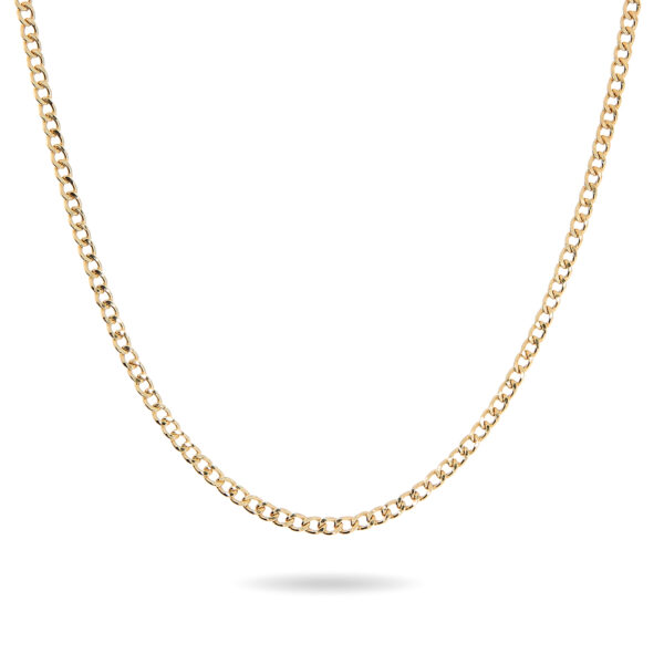 Długość obwodu łańcuszka: 60 cmRodzaj splotu: pancerkaSzerokość splotu łańcuszka: 2,1 mmPróba złota: 585Wypełnienie ogniw: dmuchane (puste w środku)SPLOT PANCERKA - JEDEN Z NAJCHĘTNIEJ WYBIERANYCHSplot pancerka to masywne, pojedyncze ogniwa, spłaszczone na bocznych krawędziach. Łańuszki o tym splocie są bardzo mocne i wytrzymałe. Odpowiedni szlif brzegów ogniw zapewnia piękne odbijanie światła i zapewnia niezwykłe efekty wizualne. Złoty, średniej grubości łańcuszek o długości 60 cm ze splotem pancerka nadaje się zarówno dla mężczyzn, jak i dla kobiet. Najczęściej dodatkiem są zawieszki krzyżyki lub bardzo nowoczesne inne formy zawieszek.ŁAŃCUSZEK O DŁUGOŚCI 60 CM - ZARÓWNO DLA KOBIET I MĘŻCZYZNŁańcuszek posiada dmuchane (puste w środku) ogniwa, co oznacza że jest lżejszy i wygodniejszy do noszenia. Dmuchane ogniwa oznaczają także znacznie niższą cenę (związaną z mniejszą wagą) w porównaniu do łańcuszka z pełnymi ogniwami.Średniej grubości (szerokość splotu 2,1 mm) złoty łańcuszek 60 cm