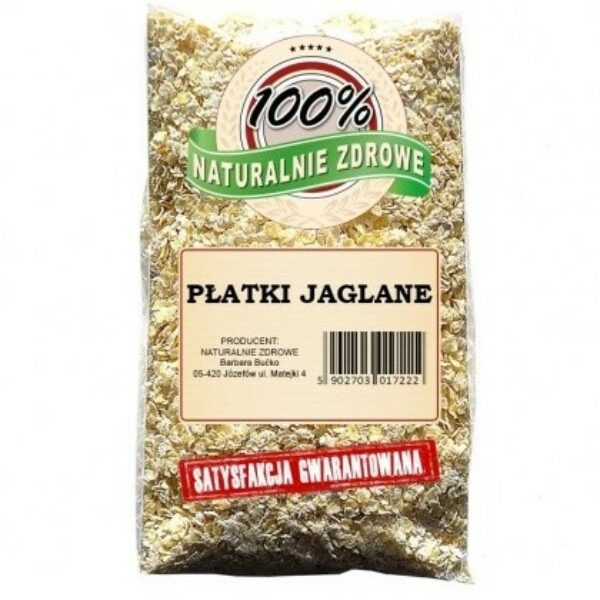 Nasze płatki jaglane to idealna alternatywa dla tych, którym znudziła się już owsianka. Płatki jaglane zalane wrzątkiem lub mlekiem, z dodatkiem owoców lub orzechów, będą doskonałym i sycącym daniem śniadaniowym. Z płatków można przygotować także pyszne placuszki — w tym również wytrawne — oraz wiele innych przysmaków. Smak płatków jaglanych jest bardzo neutralny, dzięki czemu wyśmienicie smakują zarówno na słodko, jak i w wersji wytrawnej.Dlaczego warto jeść płatki jaglane?Ale uniwersalność i wyborny smak to nie wszystkie powody, dla których warto zrobić dla płatków owsianych miejsce w kuchni. Proso, czyli zboże, z którego przygotowuje się wyroby jaglane, to ewenement wśród zdrowych produktów roślinnych. Zawiera spore ilości składników odżywczych, pierwiastków i witamin, między innymi magnez oraz rzadko spotykane w żywności miedź, mangan i fosfor, niezbędne do prawidłowego funkcjonowania organizmu. Oprócz tego proso, jako jedyne ze zbóż, jest bogate w krzemionkę, dzięki czemu wspomaga wzrost włosów i paznokci.Płatki jaglane są także sprzymierzeńcem osób odchudzających się. Są lekkostrawne oraz niskokaloryczne. Poza tym proso naturalnie nie zawiera glutenu. Jeżeli jednak jesteś na diecie bezglutenowej, wybieraj wyłącznie produkty z symbolem przekreślonego kłosa.Gdzie kupić płatki jaglane?Warto też wspomnieć, że cena płatków jaglanych jest wyjątkowo przystępna! Gdzie można je kupić? Oczywiście w naszym sklepie Naturalnie Zdrowe. W naszej ofercie znajdziesz najwyższej jakości płatki jaglane, które wzbogacą Twoją dietę o cenne składniki odżywcze. Skład: płatki jaglane 100%Kraj pochodzenia: PolskaMasa netto: od 400 g W zakładzie wykorzystywane są surowce zawierające: gluten, sezam, różne orzechy.Data przydatności i numer partii towaru znajdują się na opakowaniu.Przechowywać szczelnie zamknięte w suchym i chłodnym miejscu.Opakowanie może różnić się wyglądem w zależności od partii towaru. Wartość odżywcza 100g produktu:Wartość energetyczna370 kcal1568kJTłuszcze3,3 g- w tym kwasy tłuszczowe nasyconeWęglowodany71,6 g- w tym cukryBłonnik2,0 gBiałko12,3 gSól PRODUCENT: NATURALNIE ZDROWE Barbara Bućko 05-420 Józefów ul. Matejki 4