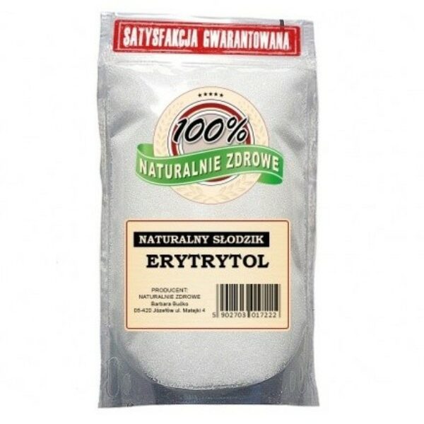 Na rynku można znaleźć wiele alternatyw dla tradycyjnego cukru. Jednak trudno kupić produkt, który będzie służył nam nie tylko jako substancja słodząca, ale też nada się do przygotowywania wypieków czy zdrowych deserów, a przy tym jego cena była przystępna dla zwykłego konsumenta. Dlatego postanowiliśmy wprowadzić taki wyrób do naszej oferty. Erytrol, który znajdziesz w Naturalnie Zdrowe, to idealny zamiennik cukru białego!Zalety i właściwości erytroluDlaczego warto wybrać właśnie erytrol? Przede wszystkim jest to produkt całkowicie naturalny. Erytrol występuje w owocach oraz niektórych produktach fermentowanych. Jego największą zaletą jest to, że chociaż jest niemal tak samo słodki, jak cukier – posiada około 75% słodyczy cukru naturalnego – zawiera znacznie mniej kalorii. Często można spotkać się z określeniem, że erytrol posiada zerową wartość energetyczną. Nie jest to do końca prawda, ale faktyczna ilość kalorii jest tak niska, że można uznać ją za pomijalną. Dla porównania, w 1 gramie cukru znajduje się około 4 kcal, a w 1 gramie erytrolu, zaledwie 0,21 kcal! Co bardzo ważne, erytrol nie powoduje skoków glukozy. Jest zatem bezpieczny dla osób na diecie o niskim indeksie glikemicznym oraz diabetyków. Dodatkowo, erytrytol nie jest trawiony przez organizm i jest wydalany razem z moczem, a także poprawia funkcjonowanie układu odpornościowego dzięki właściwościom antyoksydacyjnym. Należy jednak pamiętać, że czasami erytrytol może powodować wzdęcia i efekt przeczyszczający. Jest to jednak obserwowane tylko przy większych ilościach i dla większości osób nawet kilkadziesiąt gramów nie powinno powodować takich dolegliwości.Co ciekawe, erytrol w przeciwieństwie do cukru, jest bezpieczny dla zębów. Jego obecność hamuje proces fermentacji co oznacza, że przeciwdziała powstawaniu próchnicy i jest bezpieczny dla szkliwa. Pozwala też na uzyskanie efektu świeżości i stąd często można go znaleźć w składzie gum do żucia oraz past do zębów, ale także napojów i słodyczy typu fit.Poza tym właściwości erytrolu są bardzo podobne do cukru, dzięki czemu doskonale nadaje się do wypieków, słodzenia napojów czy przygotowywania zdrowszych wersji deserów. W przeciwieństwie do innych substancji słodzących, ten zamiennik cukru nie zmienia swojego smaku w trakcie obróbki termicznej.Erytrol, erytrytol – czy to, to samo? Nazwy są różne, ale jest to ten sam produkt. Przy jego pomocy przygotujesz ulubione wypieki w znacznie zdrowszej i odchudzonej wersji. Chcesz się zdrowiej odżywiać, ale jednocześnie nie wyobrażasz sobie życia bez słodyczy? To proste, zamiast cukru wybierz erytrytol! Skład: erytrol 100%Kraj pochodzenia: ChinyMasa netto: od 500 gW zakładzie wykorzystywane są surowce zawierające: gluten, sezam, różne orzechy.Data przydatności i numer partii towaru znajdują się na opakowaniu.Przechowywać szczelnie zamknięte w suchym i chłodnym miejscu.Opakowanie może różnić się wyglądem w zależności od partii towaru. Wartość odżywcza w 100 g produktuWartość energetyczna0,0kJ / 0,2kcalTłuszcz0,0gw tym kwasy tłuszczowe nasycone0,0gWęglowodany98,98gw tym cukry0 gBłonnik-Białko0 gSól0 g PRODUCENT: NATURALNIE ZDROWE Barbara Bućko 05-420 Józefów ul. Matejki 4Sprawdź również artykułCzym zastąpić cukier? Ksylitol czy erytrol?