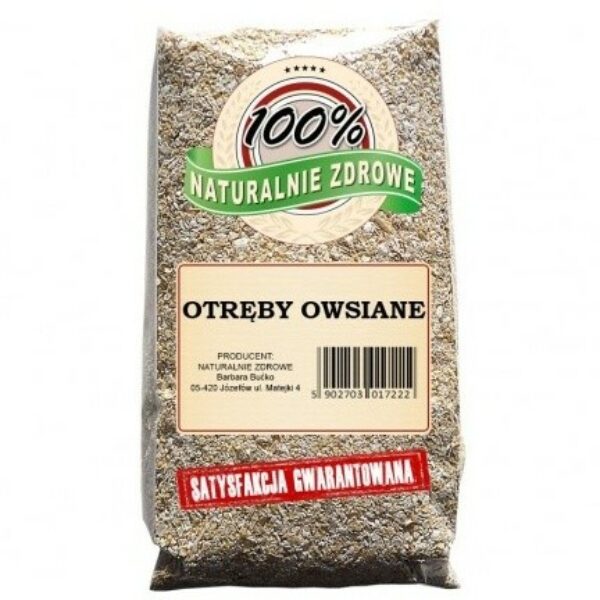 Otręby owsiane są doskonałym dodatkiem do wielu potraw oraz prostym sposobem na to, by zwiększyć w codziennej diecie ilość wartościowego błonnika. Ale tylko pod warunkiem, że są całkowicie naturalne oraz pozbawione dodatku szkodliwych i po prostu zbędnych substancji, takich jak utwardzane tłuszcze czy rafinowane cukry. Gdzie kupić całkowicie naturalne otręby owsiane? Takie otręby oferuje nasz sklep Naturalnie Zdrowe. Otręby dostępne na naszej stronie są całkowicie ekologiczne, a przy tym – ekonomiczne!Jak stosować otręby owsiane?Przede wszystkim, nie ma lepszego pomysłu na urozmaicenie śniadania niż otręby owsiane. Właściwości jakie posiadają pozwalają na szybkie stworzenie idealnego posiłku na początek dnia. Wolno uwalniające się węglowodany oraz spora ilość błonnika sprawi, że energii nie zabraknie nam przez wiele godzin. Przy ich użyciu przygotujesz zdrową domową granolę, a także pyszne placuszki owsiano-twarogowe. Otręby są też rewelacyjnym dodatkiem do koktajli, jogurtu, a nawet sałatek. Świetnie sprawdzą się również w przepisach na dietetyczne ciasteczka, a nawet domowych peelingach czy maseczkach do twarzy!Otręby owsiane to idealny sposób na wzbogacenie Twojej diety o cenne składniki odżywcze. Otręby owsiane zawierają takie jak przeciwutleniacze, magnez, fosfor, cynk i potas, a także ryboflawina i tiamina, który nie wymaga od Ciebie praktycznie żadnego wysiłku. Co więcej, ze względu na błonnik oraz stosunkowo niewielką zawartość kalorii, otręby to także sprzymierzeniec osób walczących o piękniejszą sylwetkę. Wspomagają perystaltykę jelit i usprawniają proces trawienia. W efekcie dbamy o sprawny układ pokarmowy i jednocześnie budujemy odporność całego organizmu.Otręby owsiane – cenaCena naszych otrębów przyjemnie zaskakuje, a pojemność sprawia, że starczą Ci one na bardzo długo. Za opakowanie najwyższej jakości otrębów owsianych zapłacisz u nas naprawdę niewiele, a znajdziesz dla nich tyle różnych zastosowań, że z pewnością Ci się nie znudzą. Należy również pamiętać, że otręby różnią się od płatków owsianych z którymi czasami są mylone. Płatki powstają z ziarna pozbawionego łusek, a owsiane otręby to właśnie te łuski, które są prawdziwą bombą składników odżywczych. Już 2-3 łyżki dziennie pozwolą cieszyć się lepszym zdrowiem oraz niższym poziomem „złego” cholesterolu LDL i unormowanym poziomem glukozy we krwi. Skład: otręby owsianeKraj pochodzenia: PolskaMasa netto: od 400 g W zakładzie wykorzystywane są surowce zawierające: gluaten, sezam, różne orzechy.Data przydatności i numer partii towaru znajdują się na opakowaniu.Przechowywać szczelnie zamknięte w suchym i chłodnym miejscu.Opakowanie może różnić się wyglądem w zależności od partii towaru. Wartość odżywcza w 100g produktuWartość energetyczna1584 kJ / 376 kcalTłuszcz 7,0 gw tym kwasy tłuszczowe nasycone1,3 gWęglowodany 55,7 gw tym cukry1,5 gBłonnik 10,5 gBiałko17,3 gSól0,008 gWitaminy: Kwas Foliowy51 µg (25,5%)*Kwas pantotenowy1,4 mg (23,3%)*Składniki mineralne: Potas565 mg (28,3%)*Fosfor733 mg (104,7%)*Żelazo5,4 mg (38,6%)*Magnez235mg (62,7%)*Cynk3 mg (30%)*Mangan0,5mg (25%)**% referencyjnej wartości spożycia dla osoby dorosłej. PRODUCENT: NATURALNIE ZDROWE Barbara Bućko 05-420 Józefów ul. Matejki 4