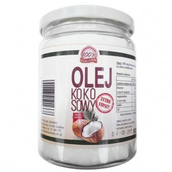 Olej kokosowy nierafinowany Extra Virgin – wybierz jakośćOlej kokosowy Extra Virgin nierafinowany tłoczony jest na zimno tylko jeden raz. Nie posiada on jakichkolwiek dodatków i nie jest konserwowany chemicznie. Pamiętaj, że jego cechą charakterystyczną jest postać stała w stosunkowo niskich temperaturach (poniżej 26 stopni Celsjusza). Powyżej tych wartości staje się płynnym. Zimne i powolne mechaniczne jego tłoczenie jest gwarantem zachowania wielu cennych składników odżywczych oraz wspaniałego smaku i aromatu kokosa.Nierafinowany olej kokosowy Ekstra Virgin znajduje zastosowanie od wielu setek lat w przemyśle spożywczym, przemysłowym, świetnie sprawdza się w kosmetyce. Można go używać zarówno w kuchni, jak i łazience, podczas sprzątania i gdy chcesz zadbać o swój wygląd. Olej kokosowy Virgin to inwestycja w zdrową przyszłość.Olej kokosowy nierafinowany Extra Virgin – zastosowanieUniwersalność Oleju kokosowego Extra Virgin nierafinowanego polega między innymi na możliwości zastosowania zarówno w celach spożywczych, jak również kosmetycznych. Możesz wypróbować go do smażenia potraw orientalnych – mięsnych i wegetariańskich. Bardzo ciekawym zastosowaniem kulinarnym jest jego niewielki dodatek do porannej owsianki czy musli, który nie tylko wspaniale wzbogaci smak, ale także prawidłowo zbilansuje ten ważny posiłek.Innym zastosowaniem w kuchni dla oleju z kokosa są wszystkie niemal potrawy smażone – nie tylko mięsne czy też z ryb, ale przede wszystkim dania na bazie mąki – naleśniki, racuchy, a także smażone pierogi lub gofry.Innym zastosowaniem w kuchni dla oleju z kokosa są wszystkie niemal potrawy smażone – nie tylko mięsne czy też z ryb, ale przede wszystkim dania na bazie mąki – naleśniki, racuchy, a także smażone pierogi lub gofry. Jeśli chcesz użyć oleju w inny sposób, możesz postawić go jako podstawowy kosmetyk w łazience. Olej kokosowy nierafinowany wykorzystasz na przykład do olejowania włosów czy natłuszczenia skóry – może być komponentem domowej roboty kremów i balsamów do ciała.Olej kokosowy – korzyści ze stosowaniaOlej kokosowy to skarbnica dobrych składników i wartości odżywczych, z której warto korzystać. Zawiera dużo witaminy D i E oraz A, kwasy omega 3, dostarcza naszemu organizmowi zdrowych tłuszczy, bez których z trudem wchłaniają się witaminy i mikroelementy zawarte w jedzeniu. W kosmetyce stanowi uniwersalną bazę do innych produktów, a w dodatku jest tolerowany przez wiele osób z alergiami i kłopotami skórnymi. Olej kokosowy nierafinowany – gdzie kupić? Postaw na sprawdzone produkty i dobrze wyposażony sklep ze zdrową żywnością. Zainwestuj w zdrowe składniki w swojej kuchni i ciesz się zdrowiem swoich bliskich.Informacje o produkcienazwa: olej kokosowy tłoczony na zimno 500mlskład: olej kokosowy, tłoczony na zimno 100% bez konserwantówinformacja o alergenach: bez alergenówkraj pochodzenia: Indonezjazawartość netto: od 500 mlsposób przechowywania: przechowywać szczelnie zamknięte w suchym i chłodnym i zaciemnionym miejscupo otwarciu najlepiej przechowywać w temperaturze od 4 do 10°Copakowanie może różnić się wyglądem w zależności od partii towarutermin przydatności: data znajduje się na etykiecieWartość odżywcza w 100 g produktu (w tabeli)Wartość energetyczna3404kJ / 828kcal kcalTłuszcz92 gw tym kwasy tłuszczowe nasycone87 gkwasy tłuszczowe jednonienasycone4 gkwasy tłuszczowe wielonienasycone1 gWęglowodany0 gw tym cukry0 gBiałko0 gSól0 gPRODUCENT : NATURALNIE ZDROWE Barbara Bućko 05-420 Józefów ul. Matejki 4Sprawdź również artykułNajzdrowszy olej do smażenia – jaki wybrać?