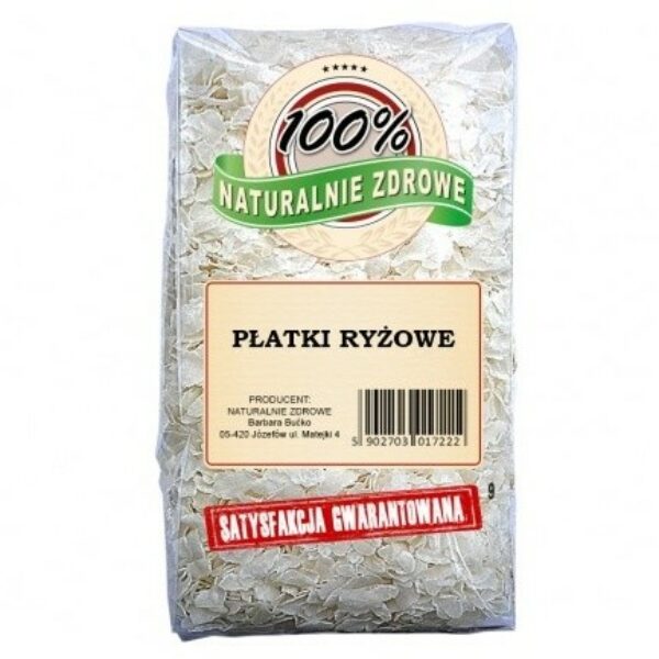 Płatki ryżowe błyskawiczne to lekkostrawna i sycąca przekąska, która idealnie sprawdzi się jako szybkie śniadanie lub podwieczorek. Zapewnią dawkę energii w drugiej części dnia i nie obciążą przy tym układu trawiennego. Duża zawartość węglowodanów i niski poziom tłuszczy pozwala traktować płatki ryżowe jako dietetyczny posiłek dla osób aktywnych i dbających o zdrowy styl życia. Płatki ryżowe błyskawiczne są bogate w żelazo i wapń. Szczególnie polecane są dzieciom i młodzieży w okresie intensywnego wzrostu. Mogą być podawane nawet dzieciom poniżej 1 roku życia. Można gotować je zarówno na mleku jak i wodzie. Płatków ryżowych można też użyć do zagęszczania zup i sosów jako alternatywę dla mąki. Co istotne, spożywanie płatków ryżowych jest bezpieczne dla osób z celiakią, gdyż nie zawierają glutenu. Nie powodują również nagłych skoków glukozy we krwi. Płatki ryżowe błyskawiczne mogą być jedzone bez dodatków, ale świetnie komponują się ze świeżymi owocami, dżemami czy bakaliami. Dla smaku do płatków ryżowych można też dodać miodu i przypraw takich jak cynamon. skład: płatki z ryżu białego długoziarnistego 100%masa netto: 1kgwyprodukowano w Polsce Produkt może zawierać gluten, soję, sezam, różne orzechydata przydatności, kraj pochodzenia i numer partii towaru znajdują się na opakowaniuprzechowywać szczelnie zamknięte w suchym i chłodnym miejscuopakowanie może różnić się wyglądem w zależności od partii towaruWartość odżywcza w 100g:Wartość energetyczna: 1460 kJ / 349 kcalTłuszcze: 0,7 g-w tym kwasy tłuszczowe nasycone: 0,2 gWęglowodany: 79 g-w tym cukry: 0,2 gBiałko: 6,7 gSól: 0,02g PRODUCENT :NATURALNIE ZDROWEBarbara Bućko05-420 Józefówul Matejki 4