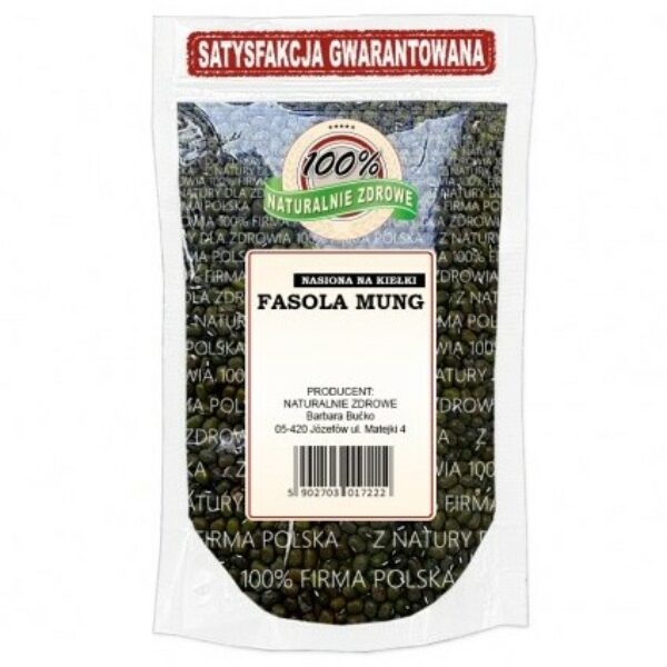 Zdrowe odżywianie jest trudne i drogie? Wcale nie! Dzięki naszym kiełkom fasoli mung wzbogacisz swój codzienny jadłospis o witaminy i minerały, a Twoje potrawy nabiorą nie tylko wartości odżywczych, ale także smaku.Dlaczego warto jeść kiełki fasoli mung?Fasola mung to roślina doskonale znana w kuchni azjatyckiej, która zawiera prawdziwe bogactwo witamin z grupy B oraz witaminę E, zwaną również witaminą młodości. Co więcej, kiełki fasoli mung są także cennym źródłem białka roślinnego, co sprawia, że są doskonałym składnikiem diety wegetariańskiej oraz wegańskiej.Czy fasola mung jest smaczna? Oczywiście! Kiełki tej wschodniej rośliny to idealny dowód na to, że zdrowa kuchnia nie musi być mdła i nudna! Kiełki fasoli mung swoim smakiem przypominają zielony groszek, dzięki czemu są rewelacyjnym dodatkiem do sałatek oraz innych dań, niekoniecznie orientalnych.Jak wyhodować kiełki samodzielnie?Wyhodowanie kiełków to również żaden problem – wystarczy kiełkownica oraz odrobina cierpliwości i nawet osoba całkowicie pozbawiona talentu ogrodniczego będzie mogła rozkoszować się smakiem tej pysznej przekąski!Dlaczego warto samodzielnie hodować kiełki? Takie rozwiązanie jest znacznie tańsze niż codzienne kupowanie podobnych półproduktów. Cena nasion fasoli mung jest znacznie niższa niż sklepowych kiełków. Poza tym, hodując kiełki w domowym zaciszu, będziesz mieć pewność, że są one całkowicie ekologiczne i wolne od potencjalnie szkodliwych alergenów. Ale to nie wszystkie zalety samodzielnej hodowli! Kiełki dostępne w sklepach stacjonarnych najczęściej pakowane są w plastikowe pudełka. Domowa uprawa sprawi, że znacznie ograniczysz zużycie plastiku.Fasola mung zwana też fasolą złotą to roślina z rodziny bobowatych. Oznacza to, że jest to bliska krewna cieciorki czy groszku. Osiągająca 120cm roślina uprawiana jest głównie w Azji Południowej oraz w Chinach i Indiach dlatego najczęściej można ją spotkać w kuchniach tamtego regionu świata. Fasola mung, czyli wege białkoWprawdzie pod względem ilości największą część składu zajmują węglowodany to fasola mung jak pozostałe strączki jest też bogatym źródłem białka roślinnego. 24 g tego makroskładnika jest porównywalna z ilością jakie znajdziemy w mięsie. Ale to nie wszystko. Na uwagę zasługuje również spora porcja błonnika. Dodanie fasoli mung do posiłków nie tylko pozwoli zaspokoić uczucie głodu na dłużej, ale też usprawnia pracę jelit i poprawia metabolizm. Fasola mung to również bogactwo minerałów jak cynk, fosfor, potas i sód, ale też przeciwutleniaczy, szczególnie flawonoidów. To oznacza, że szczególnie można polecić fasolę mung w profilaktyce zmian nowotworowych i chorób serca.Gdzie kupić nasiona fasoli mung?Gdzie kupić nasiona fasoli mung? Oczywiście w Naturalnie Zdrowe! Nasz sklep ma w swojej ofercie najwyższej jakości nasiona, przy pomocy których wyhodujesz własne pyszne i zdrowe kiełki. Nawet jeśli nie jesteś fanem kuchni indyjskiej to będą to pyszne dodatki do sałatek, kanapek i innych dań. Co ciekawe, fasola mung może być podstawą do stworzenia wegańskiego farszu do pierogów, świetnie komponuje się z rybami i owocami morza, a nawet jest możliwość zrobienia z nich orientalnych i oryginalnych w smaku lodów.skład: fasola mung do kiełkowania 100% bez dodatkówKraj pochodzenia: Argentynamasa netto: 250g W zakładzie wykorzystywane są surowce zawierające: gluten, sezam, różne orzechyData przydatności i numer partii towaru znajdują się na opakowaniu.Przechowywać szczelnie zamknięte w suchym i chłodnym miejscu.Opakowanie może różnić się wyglądem w zależności od partii towaru.Wartość odżywcza w 100 g produktuWartość energetyczna1453kJ / 347kcalTłuszcz1,15 gw tym kwasy tłuszczowe nasycone0,35 gWęglowodany62,62 gw tym cukry6,6 gBłonnik16,3 gBiałko23,86 gSól0,04 gPRODUCENT:NATURALNIE ZDROWE Barbara Bućko 05-420 Józefów ul. Matejki 4