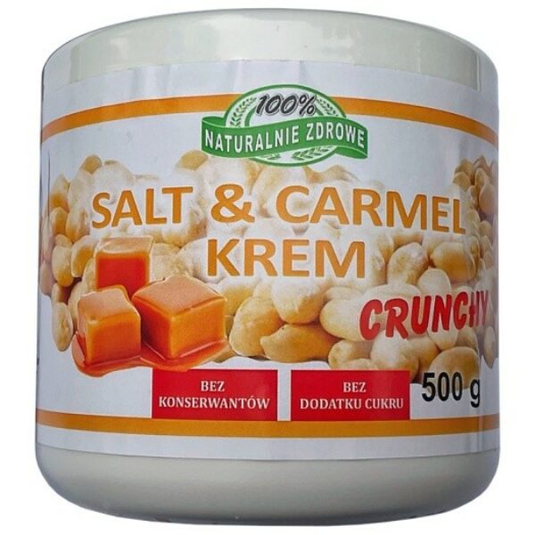 Krem słony karmel od Naturalnie Zdrowe to świetna propozycja dla wszystkich osób aktywnych fizycznie, dbających o szczupłą sylwetkę i czytających uważnie etykiety. Bazę do naszych kremów stanowią orzeszki ziemne i pod względem chociażby konsystencji kremy są bardzo zbliżone do typowego masła orzechowego. Nasza propozycja to zdrowsza alternatywa dla popularnych kremów czekoladowych dostępnych w sklepach. Kremy Naturalnie Zdrowe to pyszne smarowidło charakteryzujące się jednocześnie dobrej jakości składem. W naszych kremach nie znajdują się żadne zbędne dodatki w postaci oleju palmowego, a cukier został zastąpiony zdrowszymi zamiennikami w postaci maltitolu i erytrolu. Kremy idealnie sprawdzą się jako pasta do kanapek, naleśników czy omletów. Można je też kłaść na wafle ryżowe czy po prostu spożywać na surowo jako rodzaj słodkiej przekąski. Nie trzeba się przy tym martwić o przybranie na wadze - sugerowana porcja to tylko 150 kcal. Spróbuj już dziś!Skład:krem orzechowy arachidowy 100 % (48,5%): [orzechy arachidowe prażone], substancja słodząca: maltitol, olejshea, orzechy laskowe, mleko odtłuszczone w proszku, serwatka demineralizowana w proszku (z mleka), olejsłonecznikowy, sól himalajska, aromaty, lecytyna (z soi).Wartości odżywcze w 100g:Wartość energetyczna2507 J604 kcalTłuszczw tym kwasy tłuszczowe nasycone46 g7,4 gWęglowodanyw tym cukry28 g8,1 gBłonnik5 gBiałko17 gSól1,5 gProducent: Naturalnie Zdrowe Barbara Bućko