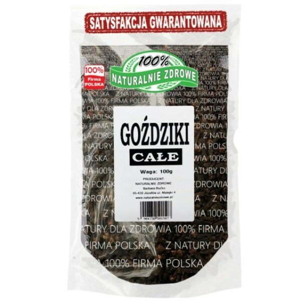 Popularne goździki pozyskiwane są z goździkowca korzennego – drzewa wywodzącego się z Azji, ale obecnego również w Afryce. Przyprawa składa się z suszonych pąków kwiatowych drzewa goździkowego i jest znana już od czasów starożytnych Chin, gdzie pierwotnie je wykorzystywano. Z czasem trafiły do Europy, gdzie do dzisiaj są szeroko wykorzystywane w kuchni i jako element ziołolecznictwa.Goździki - aromat świątCałe goździki obecnie kojarzą się głównie z okresem świątecznym. Wtedy też stanowią nieodłączny element wszelkiego rodzaju grzańców czy kompotów. Ich piękny i słodki aromat relaksuje i przywołuje dobre wspomnienia. I nic w tym dziwnego ponieważ właściwości goździków nie tylko pozwalają im działać rozkurczająco, ale też znieczulająco i rozgrzewająco. Co za tym idzie, po ich spożyciu czujemy się błogo. Do tego dodać warto działanie antybakteryjne goździków, które zawdzięczają obecności eugenolu. Jest to substancja, która stosowana jest w stomatologii jako składników środków antyseptycznych. Z tego powodu w medycynie naturalnej radzi się by w przypadku dolegliwości jamy ustnej rzuć właśnie goździki. Taki zabieg pozwala też na zniwelowanie nieświeżego oddechu.Goździki chętnie wykorzystywane są w okresie zimowo-świątecznym dzięki korzennemu smakowi i aromatowi jaki dodają do ciepłych i zimnych napojów. Na tym jednak możliwości użycia tej przyprawy się nie kończą. Należy jednak podkreślić by zwracać uwagę na jakość kupowanego surowca, a przede wszystkim by kupować goździki całe, a nie wersję mieloną. Warto też zadbać o odpowiednie i szczelne opakowanie, w którym będziemy przechowywać goździki. Wtedy mamy gwarancję i pewność utrzymania nie tylko cudownego goździkowego aromatu, ale też wszystkich składników odżywczych. Taki właśnie surowiec jest dostępny w sklepie Naturalnie Zdrowe.Goździki - relaks i dobry apetytNa jakie dolegliwości może pomóc sięgnięcie po goździki całe? Wbrew pozorom jest tego całkiem dużo. Prócz wspomnianego już działania przeciwbólowego i antyseptycznego, goździki wpływają pozytywnie na procesy trawienne – pobudzają wytwarzanie soków trawiennych i poprawiają apetyt. Działają też na układ nerwowy i odpornościowy – ułatwiają zasypianie i regenerację organizmu, usuwają stres i wyczerpanie psychiczne. Dodanie kilku goździków do ciepłej herbaty pomaga w przypadku bóli migrenowych i tak wzbogacony napój można pić codziennie, profilaktycznie. Co ciekawe, obecny w goździkach euganol obniża też poziom cukru we krwi i ilość złego cholesterolu LDL.Goździki przede wszystkim kojarzą się z dodatkiem do napojów alkoholowych jak piwo czy wino. Nie oznacza to jednak, że sprawdzą się tylko w takim zastosowaniu. Z powodzeniem możemy wzbogacić nimi sosy owocowe czy mięsne. Dobrze komponują się również z dziczyzną, wieprzowiną czy baraniną. Goździki całe znajdziemy również w przepisach na kapustę kwaszoną, pasztety czy potraw z ryb. O dziwo, można je też dodawać do spaghetti, a nawet pizzy. Ich obecność w kuchni to nie tylko piękne zapach, ale też ochrona przed szkodnikami spożywczymi jak mole.Goździki dostępne w Naturalnie Zdrowe można mielić w młynku i dzięki temu mieć w zanadrzu zarówno całe goździki, jak i proszek.W zakładzie wykorzystywane są surowce zawierające: gluten, sezam, różne orzechy.Data przydatności i numer partii towaru znajdują się na opakowaniu.Przechowywać szczelnie zamknięte w suchym i chłodnym miejscu.Opakowanie może różnić się wyglądem w zależności od partii towaru.Kraj pochodzenia: KomoryOpakowanie 200g i 1kg to wielokrotność paczki 100g.Producent: Naturalnie Zdrowe Barbara Bućko