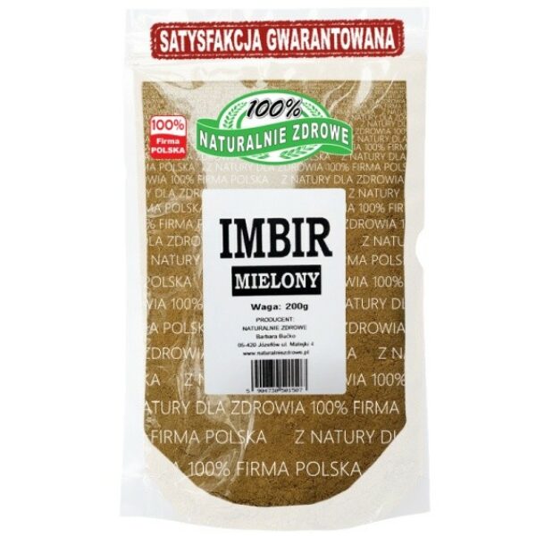 Imbir to jedna z najpopularniejszych używanych przypraw wykorzystywanych zarówno w świeżej, jak i mniej lub bardziej przetworzonej formie. Prócz walorów smakowych, imbir może poszczycić się również wieloma właściwościami pro zdrowotnymi.Imbir - dalekowschodnia ostrośćImbir często kojarzony jest z dodatkiem występującym głównie w różnych kuchniach azjatyckich. Obok sosu sojowego jest nieodłącznym elementem wszystkich zestawów sushi czy marynowanych sałatek warzywnych z tamtej części świata. Chociaż jego pochodzenie nie jest do końca znane to wiadomo, że uprawa imbiru może sięgać kilku tysięcy lat wstecz. Często można też spotkać się z wykorzystaniem imbiru w napojach zarówno ciepłych jak i zimnych oraz alkoholowych. Z imbirem dostajemy jednak znacznie więcej niż tylko oryginalny i wyjątkowy smak – to też mnóstwo cech leczniczych z których warto korzystać przez cały rok.Imbir mielony to przede wszystkim wsparcie procesu trawienia. Nie tylko zwiększa ilość wydzielanych kwasów żołądkowych, ale również niweluje wzdęcia i wzmaga apetyt. Przyprawa ma oczywiście działanie przeciwzapalne i przeciwbólowe, a także odkażające. Stąd też częste wykorzystanie imbiru profilaktycznie i podczas okresu zwiększonych infekcji. Imbir mielony ze względu na intensywny i pikantny smak uważany jest za afrodyzjak. Z tego powodu często można spotkać kosmetyki, szczególnie męskie, z imbirem w składzie.Imbir w polskiej kuchniPo imbir mielony sięgamy najczęściej przy okazji świąt jako składnik ciast, pierników czy pieczonych owoców. Dobrze sprawdza się też jako przyprawa do mieszanek do mięs i oczywiście jako wzmacniacz smaku piw i win serwowanych na ciepło, kiedy oczekiwany jest ostrawy, imbirowy posmak. Warto podkreślić, że imbir świeży i imbir mielony nie są identyczne. Korzeń można dodawać do tłustych potraw czy owoców morza, natomiast w formie proszku lepiej sprawdzi się w słodkich przepisach i deserach. Warto podkreślić, że mielony imbir dobrze komponuje się z przyprawami takim jak ziele angielskie, goździki czy pieprz.Nie ma dużych ograniczeń odnośnie spożywania imbiru. Tradycyjnie uwagę powinny zwrócić kobiety w ciąży, którym zaleca się kontrolę spożywanych ilości chociaż całkowite wykluczenie nie jest wymagane. Także osoby z dolegliwościami układu pokarmowego, jak wrzody czy refluks, gdzie ostry smak imbiru mógłby nasilić niepożądane objawy.W zakładzie wykorzystywane są surowce zawierające: gluten, sezam, różne orzechy.Data przydatności i numer partii towaru znajdują się na opakowaniu.Przechowywać szczelnie zamknięte w suchym i chłodnym miejscu.Opakowanie może różnić się wyglądem w zależności od partii towaru.Kraj pochodzenia: PeruOpakowanie 400g i 1kg składają się z wielokrotności 200g.Producent: Naturalnie Zdrowe Barbara Bućko