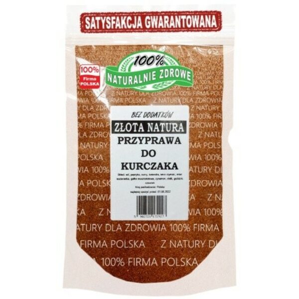 Niedzielny kurczak w towarzystwie warzyw to jedno z ulubionych dań wszystkich Polaków. Złocisty kolor, chrupiąca skórka i piękny aromat ziół i przypraw – ślinka cieknie od samego myślenia. Nie jest jednak łatwo o samodzielne dobranie wszystkich niezbędnych przypraw, które zagwarantują sukces po wyciągnięciu dania z piekarnika. W tym momencie z pomocą przychodzi przyprawa do kurczaka złota od Naturalnie Zdrowe – idealnie dobrana kompozycja, która sprawi, że kurczak za każdym razem będzie zachwycać.Przyprawa do kurczaka – skład Przyprawa do kurczaka złota to starannie dobrany zestaw ziół i przypraw, który szczególnie dobrze wzbogaci smak potraw drobiowych. Oczywiście najlepiej jest użyć mieszanki z kurczakiem, ale nic nie stoi na przeszkodzie, by spróbować również z indykiem czy kaczką. W składzie znajdziemy bowiem wszystkie elementy podkreślające walory białego mięsa: sól, papryka, curry, kolendra, kmin rzymski, imbir, kozieradka, gałka muszkatołowa, cynamon, chilli, goździki i czosnek. Dzięki takiemu zestawowi nie tylko uzyskamy pyszny, lekko pikantny smak i aromatyczny zapach, ale i piękny, złocisty kolor skórki.Przypraw do kurczaka – nie tylko do mięsaNazwa przyprawy może wskazywać, że mamy do czynienia z przyprawą przeznaczoną wyłącznie jako dodatek do mięsa kurzego. Nic bardziej mylnego! Można ją dodać jako urozmaicenie past kanapkowych z dodatkiem mięsa drobiowego, ale też jako wzmocnienie smaku sosów do makaronów. Dodatkowo po wymieszaniu z ulubionym olejem tłoczonym na zimno uzyskamy sos sałatkowy, którym można polać mieszankę sałat, a w sezonie letnim stworzyć na bazie przyprawy do kurczaka prostą i szybką marynatę do mięs i szaszłyków. Opcji wykorzystania jest mnóstwo!Przyprawa do kurczaka – smacznie i zdrowoPrzyprawa złocista do kurczaka to nie tylko oryginalny smak przygotowanego drobiu, ale też mieszanka niezawierająca w sobie żadnych sztucznych polepszaczy smaku czy konserwantów. Produkt jest wolny od GMO, ale o ile składniki mieszanki są naturalnie bezglutenowe, to środowisko, w którym następuje konfekcjonowanie, może zawierać ślady tego białka. Natomiast wszystkich miłośników diety bezmięsnej zadowoli fakt, że skład jest wegański. I o ile nie ma ogólnych przeciwskazań do spożywania, to mieszanki powinny unikać tradycyjnie kobiety w ciąży i najmłodsze dzieci. Dodatkowo osoby z wrażliwym żołądkiem powinny sprawdzić reakcje organizmu przy małych dawkach.Skład: sól, papryka, curry, kolendra, kmin rzymski, imbir, kozieradka, gałką muszkatołowa, cynamon, chilli, goździki, czosnek.Kraj pochodzenia: PolskaW zakładzie wykorzystywane są surowce zawierające: gluten, sezam, różne orzechy, gorczycę, seler, składniki mleka i jaj, soja. Data przydatności i numer partii towaru znajdują się na opakowaniu.Przechowywać szczelnie zamknięte w suchym i chłodnym miejscu.Opakowanie może różnić się wyglądem w zależności od partii towaru.Producent: Naturalnie Zdrowe Barbara Bućko