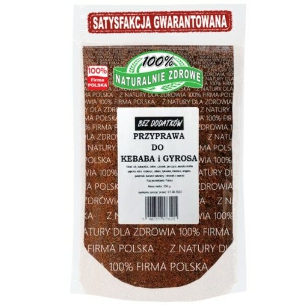 Turecki kebab i grecki gyros to jedne z najbardziej znanych dań typu fast food. Wywodzące się z rejonu Morza Śródziemnego dania zostały rozpowszechnione w całej Europie, a w Polsce cieszą się niesłabnącą popularnością. Aromatyczne, opiekane mięso podane z warzywami na talerzu lub w chlebkach pita to sycąca i smaczna potrawa. A z naszą przyprawą do kebaba i gyrosa możesz ją wykonać również w domu – szybko, prosto i bez konserwantów.Przypraw do kebab i gyrosa – śródziemnomorskie smakiDużo osób uważa, że kebab i gyros to jedno i to samo. Częściowo jest to prawda, bo faktycznie w obu przypadkach mięso przygotowywane jest w pionowo ustawionych rożnach i skrawane w drobnych fragmentach lub paskach. Jednak obie potrawy mają inne korzenie. Kebab to potrawa turecka, wykorzystująca głównie mięso baranie. Z kolei gyros pochodzi z Grecji i do jego przygotowania stosuje się przeważnie wieprzowinę. W polskich warunkach używane są również mięsa innego rodzaju: drobiowe i wołowe lub mieszanki kilku typów mięs. Reszta dodatków obejmuje różnego rodzaju warzywa, sosy, dipy czy frytki.Przyprawa do kebaba i gyrosa – moc ziół i przyprawPodstawą kebaba i gyrosa jest mięso. Musi być dobrze doprawione i aromatyczne. Nasza mieszanka przypraw w swoim składzie zawiera wszystko, co niezbędne do uzyskania pysznego smaku: znajdziemy tutaj takie zioła jak czosnek, gorczyca, rozmaryn, tymianek, oregano i kolendrę, a także warzywa: cebulę, paprykę zarówno słodką, jak i ostrą, a nawet pasternak. W połączeniu otrzymujemy kombinację gwarantującą charakterystyczny i ostrzejszy posmak bez względu na rodzaj mięsa na jaki się zdecydujemy.Przyprawa do kebaba i gyrosa – sposób użyciaJak sama nazwa sugeruje, przyprawa najlepiej pasuje do potraw typu kebab i gyros. Wtedy w towarzystwie warzyw czy w chlebku pita stanowią proste, ale sycące danie. To oczywiście niejedyny sposób, w jaki możemy wykorzystać mięsa i naszą przyprawę. Przyrządzone i upieczone mięso drobiowe możemy podzielić na małe kawałki i dodać go do sałatki typu Cezar, która zyska dzięki temu bardziej ostrego i wyrazistego charakteru. Przyprawę można również wymieszać z mięsem mielonym i w taki sposób przygotować kotlety mielone albo klopsy. Nie ma też problemu, by szczyptę dodać do ryb robionych na grillu.Przyprawa do kebaba i gyrosa od Naturalnie Zdrowe to prosty sposób na szybki i aromatyczny obiad. Nieważne czy danie będzie robione w piekarniku, na kuchence czy na ruszcie pod chmurką – przyprawa będzie pasować do każdego rodzaju mięs. Do tego bazuje na naturalnych składnikach i nie zawiera GMO, a to wszystko w przystępnej cenie.Skład: sól, kukurydza, cukier, czosnek, gorczyca, papryka słodka, papryka ostra, rozmaryn, cebula, tymianek, kolendra, oregano, pasternak, barwnik naturalny-ekstrakt papryki.Kraj pochodzenia: PolskaW zakładzie wykorzystywane są surowce zawierające: gluten, sezam, różne orzechy, gorczyca. Data przydatności i numer partii towaru znajdują się na opakowaniu.Przechowywać szczelnie zamknięte w suchym i chłodnym miejscu.Opakowanie może różnić się wyglądem w zależności od partii towaru.Producent: Naturalnie Zdrowe Barbara Bućko