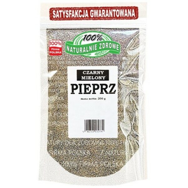 Pieprz czarny mielonyBrak soli i pieprzu na kuchennym stole wydaje się czymś nienaturalnym. Po te przyprawy sięgamy tak często, że trudno wyobrazić sobie doprawianie potraw bez biało-czarnego duetu. A warto to robić, szczególnie pieprzem czarnym, który prócz charakterystycznego podkreślenia smaku niesie ze sobą również wiele właściwości prozdrowotnych.Pieprz czarny mielony – właściwościPieprz jest rośliną rosnącą w ciepłym i wilgotnym klimacie i chociaż obecnie uprawiany jest w wielu miejscach strefy tropikalnej, to ojczyzną przyprawy są Indie. Tą uważaną za najstarszą przyprawę świata otrzymuje się z owoców i co ciekawe, kolorowe odmiany pieprzu jak zielona czy biała powstają z tej samej rośliny. Różnice w smaku i kolorze wynikają z czasu zbioru i procesu, jakim następnie są poddawane ziarenka. Pieprz czarny, uważany za najostrzejszy, jest pozyskiwany z niedojrzałych owoców, które następnie poddane są fermentacji i suszeniu.Pieprz czarny mielony – wartości odżywczePieprz czarny swoje właściwości zawdzięcza obecności w składzie olejków eterycznych, ale głównie piperyny – alkaloidowi, który jest odpowiedzialny nie tylko za ostry i wyrazisty smak, ale również za prozdrowotny wpływ na organizm. Dodanie pieprzu do potrawy nie tylko pobudzi apetyt i łaknienie, ale również pomoże w trawieniu i złagodzi ewentualne dolegliwości żołądkowe. Pomoże również oczyścić organizm z toksyn. Piperyna zwiększa również produkcję dopaminy i serotoniny, co wpływa pozytywnie na dobre samopoczucie. To tłumaczy, dlaczego pieprz czarny był uznawany kiedyś za afrodyzjak.Pieprz czarny to jednak wiele innych zalet, które czasami mogą zaskakiwać. Jedną z takich cech jest działanie antyoksydacyjne dzięki obecności polifenoli w składzie pieprzu. Oznacza to, że pieprz czarny należy traktować jako wzmocnienie systemu immunologicznego i element skutecznej profilaktyki przeciwnowotworowej. Tym bardziej że znacząco zwiększa absorpcję innego silnego przeciwutleniacza – kurkuminy. Przyprawa działa również antybakteryjnie i przeciwbólowo dzięki czemu pomaga zwalczać infekcje, szczególnie dróg oddechowych.Pieprz czarny to również poprawiony metabolizm i przyspieszone spalanie tkanki tłuszczowej – stąd jego obecność w wielu preparatach na odchudzanie.Pieprz czarny mielony – cenaPieprz czarny mielony jest przyprawą powszechnie dostępną, a jego cena nie jest wysoka. Warto jednak zawsze sprawdzić skład i upewnić się, że w środku nie ma żadnych zbędnych dodatków. Surowiec dostępny w Naturalnie Zdrowe to wysokiej jakości produkt pochodzący z Wietnamu i wolny od GMO.Skład: pieprz czarny mielony 100%Kraj pochodzenia: WietnamW zakładzie wykorzystywane są surowce zawierające: gluten, sezam, różne orzechy. Data przydatności i numer partii towaru znajdują się na opakowaniu. Przechowywać szczelnie zamknięte w suchym i chłodnym miejscu. Opakowanie może różnić się wyglądem w zależności od partii towaru.Producent: Naturalnie Zdrowe Barbara Bućko