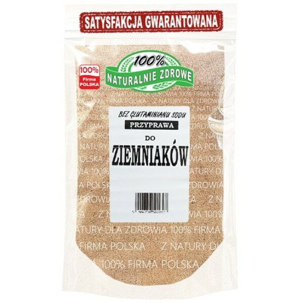 Popularne ziemniaki to prawdopodobnie najczęściej spotykane na polskich stołach warzywo. Pochodzące z Ameryki Południowe, zostały przywiezione do Europy w XVI wieku i obecnie są jedną z najczęściej uprawianych roślin na świecie – ustępują tylko kukurydzy, ryżowi oraz pszenicy. Dodatkowo Polska znajduje się w pierwszej dziesiątce największych producentów nic więc dziwnego, że kartofle czy pyry, jak również często się je nazywa, są tak częstymi gośćmi na naszych talerzach.Przyprawa do ziemniaków – jak stosowaćNa temat ziemniaków i sposobów ich przygotowania powiedziano już chyba wszystko i ciężko jest wymyślić coś nowego. Można za to ułatwić sobie życia i nadać nowego i ciekawego smaku ziemniakom, które często są daniem monotonnym i bez wyrazu. Sposobem na to jest specjalnie stworzona do tego celu kompozycja ziół i przypraw – przyprawa do ziemniaków i frytek. Co warto podkreślić, mieszankę można użyć przy praktycznie każdej okazji. Bez względu na to, czy ziemniaki będą gotowane, pieczone, czy w postaci farszu albo zapiekanki – zawsze można wycisnąć z nich trochę więcej, jeśli użyjemy do przygotowania naszej mieszanki przyprawowej.Sposób użycia jest bardzo prosty – wystarczy dodać szczyptę przyprawy do ziemniaków i dobrze wymieszać. Mieszankę można stosować zarówno przed, jak i po zakończeniu gotowania czy pieczenia. W obu przypadkach efekt będzie zaskakujący.Przyprawa do ziemniaków – składNasza mieszanka przypraw to nie tylko sól i koper, które wydają się czymś oczywistym. Ponadto każde opakowanie zawiera także cebulę, czarny pieprz, czosnek, kolendrę, pietruszkę, kminek, a nawet liście laurowe. Tak przygotowana kompozycja to gwarancja wyjątkowego smaku i pięknego aromatu podczas niedzielnego obiadu. Zachwyty bliskich gwarantowane.Mimo dużego wyboru, w sklepach często można spotkać produkty niskiej jakości. Nie tylko zawierają w sobie niepotrzebne wzmacniacze smaku, ale również ich skład jest dość ubogi. Przyprawa do ziemniaków dostępna w Naturalnie Zdrowe to atrakcyjna cena i wysokiej jakości surowiec, bez konserwantów i GMO.Skład: sól, koper, kukurydza, cukier, cebula, gałka muszkatołowa, pieprz czarny, czosnek, papryka zielona, kolendra,pietruszka, kminek, kozieradka, liść laurowy, kurkuma, barwnik naturalny- ekstrakt kurkumyKraj pochodzenia: wyprodukowane w PolsceW zakładzie wykorzystywane są surowce zawierające: gluten, sezam, różne orzechy, gorczycę, seler, składniki mleka i jaj, soja. Data przydatności i numer partii towaru znajdują się na opakowaniu. Przechowywać szczelnie zamknięte w suchym i chłodnym miejscu. Opakowanie może różnić się wyglądem w zależności od partii towaru.Producent: Naturalnie Zdrowe Barbara Bućko