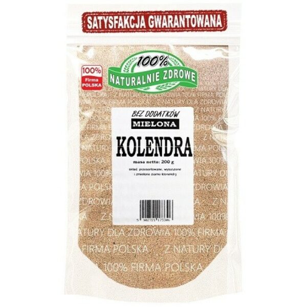 Kolendra mielonaKolendra to zioło znane od starożytności. Wywodzi się z rejonów Bliskiego Wschodu i Morza Śródziemnego i chociaż nadal można ją spotkać rosnącą dziko, to obecnie jest uprawiana na całym świecie i stanowi element wielu kuchni regionalnych. Do różnych celów wykorzystywana jest praktycznie każda część kolendry i mimo, że najczęściej używa się jej w kulinariach, to jest też często stosowana w medycynie naturalnej jako środek na polepszenie trawienia i na wzdęcia.Kolendra – na co pomaga?Kolendra nadaje potrawom charakterystycznego, delikatnie ostrego smaku i zapachu, ale ma też wiele właściwości prozdrowotnych, które tylko zachęcają, by dodawać przyprawy do przygotowywanych dań. Najbardziej znaną zaletą kolendry jest jej wpływ na usprawnienie procesów trawiennych. Skutecznie zapobiega niestrawnościom, wzmaga apetyt, a także pobudza wydzielanie się soków trawiennych. Ma też wpływ na poprawę perystaltyki jelit, a przy okazji pomaga w pozbyciu się nie tylko pasożytów układu pokarmowego, ale także metali ciężkich, takich jak rtęć i ołów.Kolendra – właściwościKolendra ma też właściwości wiatropędne – poprzez rozluźnienie napięcia mięśniowego, pozwala zniwelować wzdęcia i uczucie nadmuchanego brzucha. Łagodzi również stany zapalne błon śluzowych, co dodatkowo wpływa na dobrą kondycję jelit i układu pokarmowego, a to z kolei ma bezpośredni wpływ na cały układ odpornościowy organizmu.Warto też podkreślić, że kolendra zawiera w sobie garść antyoksydantów. Redukuje ponadto poziom cukru i złego cholesterolu LDL we krwi, a także obniża jej ciśnienie. Działa również uspokajająco.Kolendra – wykorzystanie w kuchniPodczas przygotowywania posiłków najczęściej używane są liście kolendry, zarówno świeże, jak i wersji suszonej. Kolendra posiadająca delikatnie anyżowy zapach z nutami cytrusowymi, często kojarzona jest z kuchniami azjatyckimi, ale jej obecność można odnotować również w daniach indyjskich (popularne curry), a nawet meksykańskich, gdzie stanowi składnik słynnej guacamole, czyli salsy na bazie awokado. Kolendrę często można spotkać również w przepisach dań portugalskich, libańskich i gruzińskich – jej wszechstronność jest zaskakująca.Kolendra a pietruszkaKolendrę często wykorzystuje się również jako smaczniejszy i oryginalny zamiennik natki pietruszki – w takiej formie można jej używać, chociażby jako dodatku do zup czy sałatek, a także do dekoracji dań, również tych słodkich. Świeży i orzeźwiający charakter przyprawy sprawia, że dobrze komponuje się z owocami morza, mięsami oraz deserami na bazie mleka kokosowego i owoców. Warto pamiętać, że podobnie jak natka pietruszki, kolendra traci swoje walory przy dłuższej obróbce termicznej i z tego powodu zaleca się dodawać ją na samym końcu gotowania.Skład:zmielone, suszone ziarno kolendry 100%Kraj pochodzenia: PolskaW zakładzie wykorzystywane są surowce zawierające: gluten, sezam, różne orzechy, gorczycę, seler, składniki mleka i jaj, soja. Data przydatności i numer partii towaru znajdują się na opakowaniu. Przechowywać szczelnie zamknięte w suchym i chłodnym miejscu. Opakowanie może różnić się wyglądem w zależności od partii towaru.Producent: Naturalnie Zdrowe Barbara Bućko