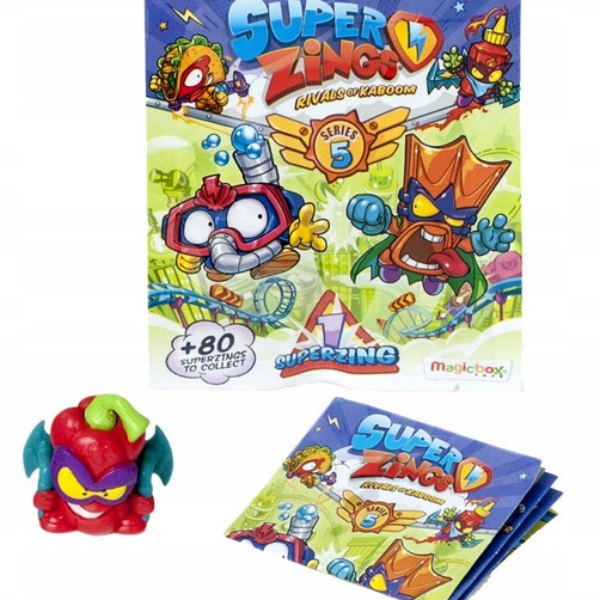 SUPER ZINGS 5 SASZETKA Z FIGURKA + SPIS BOHATEROW Uzupełnij swoją kolekcję 5. serii SuperZings postaciami zawartymi w TYM ZESTAWIE SuperZings to przedmioty codziennego użytku, które zostały przekształcone w Superbohaterów i Supervillainów. W serii 5 jest ponad 80 nowych SuperZingów! Seria 5 zawiera ponad 80 nowych SuperZings do zebrania! SuperZings to przedmioty codziennego użytku, które zostały przekształcone w Superbohaterów i Supervillainów. Każda saszetka zawiera SuperZing i ulotkę z listą bohaterów. Każdy SuperZings ma rywala: poszukaj pary rywali i stwórz własne Superteamy! Znajdź srebrne i złote postacie oraz Ultra-Rare: Kid Fury! Zestaw zawiera: • 1 Figurka SuperZings • 1 Lista Bohaterów Dodatkowe informacje: • Znajdź srebrne i złote postacie oraz Ultra-Rare: Kid Fury! • Poszukaj konkurencyjnych par i stwórz własne Superteams. • Ponad 80 zupełnie nowych SuperZings do zebrania! • Wysyłka losowa •Wymiar saszetki : 8cm x 9cm x 1.5cm Figurki pochodzą z popularnej serii Super Zings 5. Zestaw ten z pewnością będzie doskonałym uzupełnieniem lub rozpoczęciem kolekcji figurek SuperZings