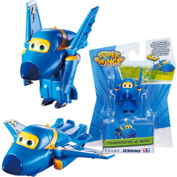 SUPER WINGS LOTEK ROBOT SAMOLOT 2W1 TRANSFORMUJĄCY Super Wings figurka Lotek (ang. Jerome) jest to samolocik koloru niebiesko-białego odgrywający role patrolu policyjnego.Ta urocza, wykonana z niezwykłą dokładnością zabawka z pewnością przyniesie wiele radości i zapewni długie godziny zabawy każdemu dziecku, które uwielbia bajkę o samolotach. Potrafi zmienić się z samolotu w robota! Masz dwie możliwości - szybujesz po niebieskich przestworzach lub zostajesz na ziemi. Którą wybierasz?! Bajkowy bohater jest teraz dostępny w formie zabawki – transformującej figurki 2w1. Dzieci mogą bawić się na dwa sposoby – samolotem lub robotem, odgrywając tym samym zapamiętane sceny serialowe. Całość zapakowana w pudełko idealne na prezent dla fana serialu. Zabawka powstała na podstawie animowanego serialu dla dzieci Super Wings. Serial ten opowiada o przygodach sześciu samolotów - Jetta, Dizzy, Donnie, Jeromea, Miry i Paula. Maluszek poprzez zabawę w odgrywanie ról rozwija swoją wyobraźnię, sprawność manualną oraz ćwiczy koncentrację. CECHY PRODUKTU: Zabawka z bajki Super Wings Wymiary figurki: ok. 6,5cm x 4,5cm x 4cm. Wymiary opakowania: 15cm x 12cm x 6cm Wiek dziecka: 3+ Certyfikat bezpieczeństwa CE