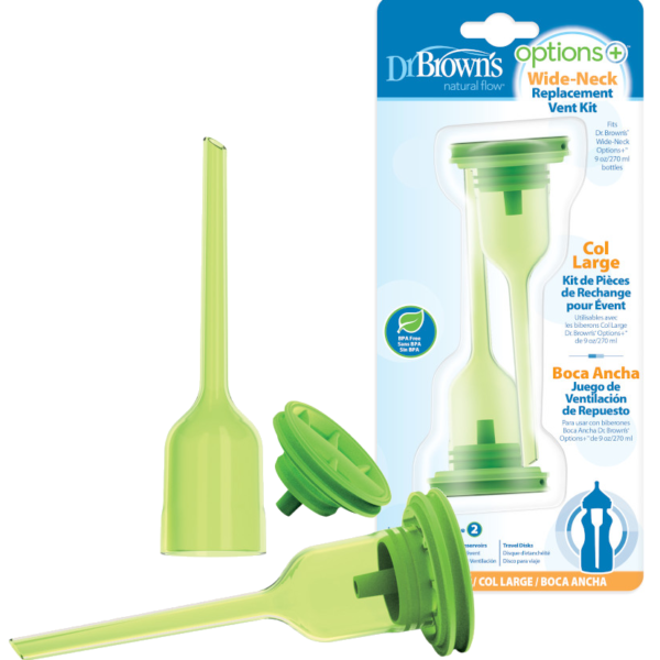 System odpowietrzający Komplet części zamiennych systemu odpowietrzającego. Pasuje do butelki Dr Brown′s Options+ z szeroką szyjką o pojemności 270ml. Jest idealny do wymiany zużytych lub uszkodzonych części. Można myć w zmywarce na górnej półce. Zestaw zawiera: 2 szt. systemu odpowietrzającego