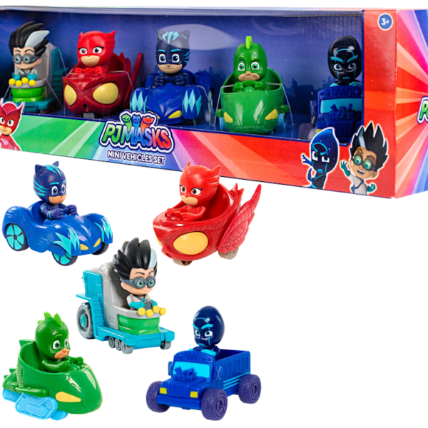 PJ MASKS PIDŻAMERSI ZESTAW WYŚCIGÓWKI 5 SZTUK WyścigówkI to zabawki stworzone przez firmę Just Play Powstała ona na podstawie serialu animowanego dla dzieci Pidżamersi Pojazdy bohaterów z serialu Pidżamersi - PJ Masks emitowanego na kanale Disney Junior. Bohaterami kreskówki jest troje dzieci (Sowella, Kotboy, Gekson), które w dzień są normalnymi dzieci, a nocą aktywują swoje bransoletki, które są połączone z ich piżamami. Przeobrażają się w Pidżamersów i walczą z przestępcami, rozwiązują zagadki i przeżywają niesamowite przygody. Zestaw zawiea 5 pojazdów wyścigówek z bajki PJ Masks. Masywna konstrukcja pojazdu jest idealna do manewrowania małymi rękami i jest tak łatwa do przetransportowania w kierunku następnej nocnej przygody PJ Masks. Wyścigówka posiada ruchome koła umożliwiające poruszanie się pojazdu po powierzchniach płaskich. Autka i figurki zostały wykonane z dużą dbałością o szczegóły i są wiernymi kopiami swoich bajkowych odpowiedników Zestaw składa się z 5 pojazdów z figurkami (zielone auto Gekko-Mobile z Geksonem, niebieskie auto Cat-Car z Kotboyem oraz czerwone auto Owl Glider z Sowellą,niebieskie auto Ninja-bus z Nocnym Ninją. szaro-niebieske auto Mobilne-laboratorium z Romeo. Przybliżony wymiar produktu : 10 x 6 x 8 cm wymiary opakowania: 50 x 12 x 13 cm Wiek 3+