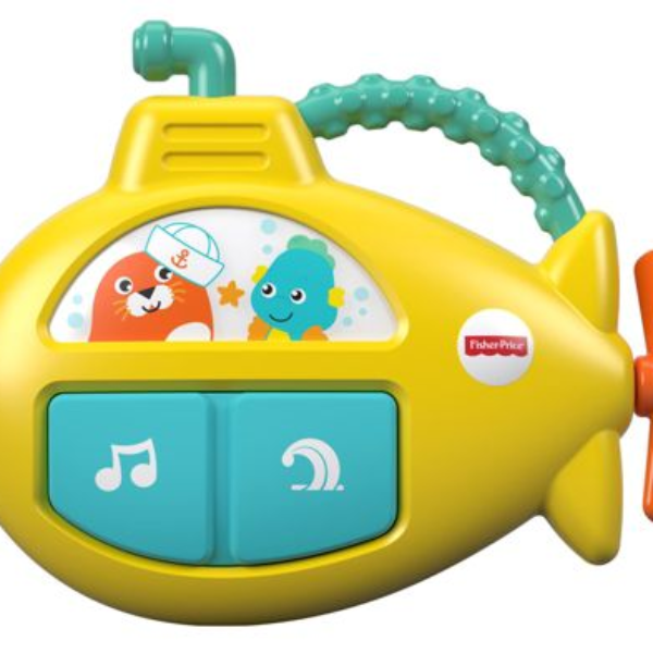 Zachęci do zabawy każde dziecko Dzięki tej przenośnej muzycznej zabawce w formie łodzi podwodnej Twoje dziecko może zanurzyć się w oceanie zabawy! Obracające się śmigło, kolorowe światełka, wesoła muzyka i uroczy morscy przyjaciele pozwolą małym odkrywcom wyruszyć ku „podwodnej” przygodzie, w domu lub w podróży! Zabawa, która rozwija: zręczność: małe rączki dziecka mogą trenować chwytanie, łapiąc zaczep łodzi podwodnej i naciskając przyciski, by włączać muzykę, zmysły: podczas gdy nawiązujące do tematyki oceanu dźwięki i wesołe melodie rozwijają słuch malucha, kolorowe światła stymulują jego wzrok, ciekawość: gdy dzieci samodzielnie włączają muzykę, odkrywają zasadę przyczyny i skutku. Cechy: Naciskaj przyciski, by usłyszeć dźwięki inspirowane oceanem! Kolorowe światełka „tańczą” w rytm muzyki Uroczy wodni przyjaciele „podróżują” łodzią podwodną Obracające się śmigło zapewnia dodatkową zabawę i pozwala ćwiczyć zręczność Uchwyt o interesującej fakturze ułatwia przenoszenie zabawki