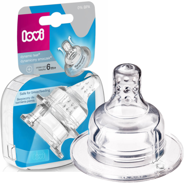 Informacje o produkcie: Dynamiczny smoczek LOVI do podawania odciągniętego mleka mamy to efekt pracy neurologopedów. Jest zbudowany z niejednorodnych warstw silikonu: miękkiej, cienkiej, wydłużającej się końcówki i szerokiej, twardej, profilowanej podstawy. Dzięki temu nie zaburza odruchu ssania i nie koliduje z karmieniem piersią. UWAGA: Marka LOVI rekomenduje karmienie piersią jako najzdrowszą formę podawania pokarmu. Zaleca rozpoczęcie podawania pokarmu w formie alternatywnej, wyłącznie po konsultacji z lekarzem, położną lub farmaceutą, gdy karmienie piersią jest niemożliwe lub niewystarczające Główne zalety: nie zaburza odruchu ssania u dziecka umożliwia zachowanie rytmu ssania dziecka karmionego piersią zapewnia aktywną pracę mięśni warg i języka umożliwia prawdłową koordynację ssania, połykania i oddychania Miękka, dynamiczna końcówka Wykonana z cienkiej warstwy silikonu. Wydłuża się i kurczy w rytm ssania dziecka, mobilizuje mięśnie jamy ustnej do aktywnej, wytężonej pracy. Dziecko musi się natrudzić podczas pobierania pokarmu ze smoczka. Twarda, szeroka, profilowana podstawa Wykonana z grubszej warstwy silikonu. Stanowi stabilne oparcie dla warg i zapobiega zagryzaniu podstawy smoczka. Wyprofilowany kształt i odpowiednio dobrana szerokość podstawy wymuszają prawidłowe ułożenie warg. Informacje dodatkowe Można polewać wrzącą wodą Można dezynfekować we wrzącej wodzie Do użytku w sterylizatorze Nie do użytku w zmywarce Nie do użytku w mikrofali Na wszystkich naszych aukcjach kupujesz produkty w 100% oryginalne i zapakowane fabrycznie. Wszystkie produkty Lovi pochodzą od dystrybutora marki w Polsce.