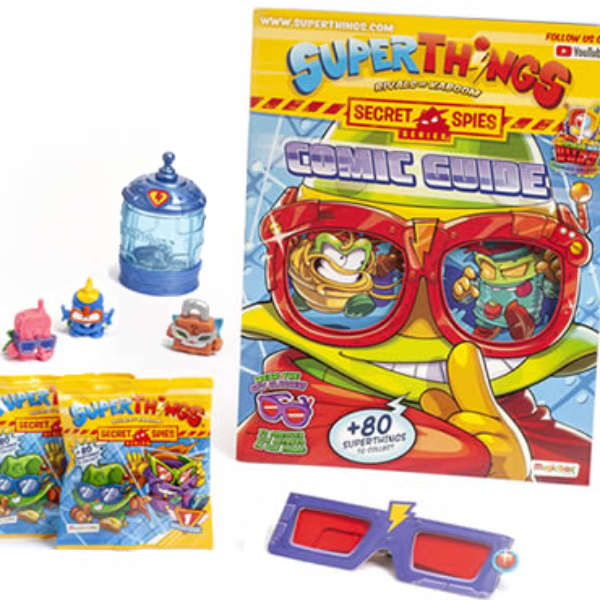 Uzupełnij swoją kolekcję z serii SuperThings postaciami zawartymi w TYM ZESTAWIE. SERIA SUPERTHINGS JEST KONTYNUACJĄ KULTOWEJ SERII ZABAWEK SUPER ZINGS. JEST TO 6 SERIA W KTÓREJ GŁOWNYM MOTYWEM SĄ TAJNI SZPIEGOWIE. ZBIERZ PONAD 80 NOWYCH FIGUREK. Ciesz się nowymi przygodami tajnych szpiegów SuperThings dzięki nowemu, 24-stronicowemu komiksowemu przewodnikowi. Pakiet startowy zawiera 1 przewodnik po komiksach, 1 wykrywacz szpiegów z efektem metalicznym (wyłącznie w pakiecie startowym!), 1 szpieg SuperThing plus 2 saszetkiz figurką i parę okularów szpiegowskich. Najlepszy sposób na wejście do świata szpiegów! Zestaw zawiera: • 1x WYKRYWACZ SZPIEGÓW(EFEKT METALICZNY) • 1x SZPIEGOWSKIE OKULARY • 3x FIGURKI SUPERTHINGS • 1x 24 STRONNICOWY KOMIKS, WERSJA ANGIELSKA. Seria Secret Spies w której do zebrania jest ponad 80 nowych SuperThings! W tej nowej kolekcji, oprócz figurek, srebrnych i złotych kapitanów, jest 12 „szpiegów” (w dwóch różnych kolorach). Czy są to bohaterowie czy złoczyńcy? Ich okulary nie pozwolą zobaczyć prawdy! Przekonaj się i umieść ich w ciepłej wodzie (35ºC - 40ºC), a kolor ich oczu zostanie ujawniony: biały dla bohaterów lub żółty dla złoczyńców. Umieść je z powrotem w zimnej wodzie (0ºC - 10ºC), aby ponownie zakamuflować oczy! Znajdz, niezwykle rzadkiego Oculus Max? W tej serii Secret Spies ultra rzadki zmienia kolor, gdy umieścisz go w gorącej wodzie! Dodatkowe informacje: 80 nowych SuperThingsów do zebrania. wiek dziecka: powyżej 3 roku życia Produkt jest oryginalny i pochodzi z oficjalnej dystrybucji. Produkt pakowany losowo. Jeśli chcesz aby wysłać konkretny wzór napisz do nas.