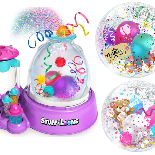 STUFFALOONS STACJA DO POMPOWANIA BALONÓW + 38 EL. Celebruj jeden z najważniejszych dni w roku dla twojego dziecka Zorganizuj przyjęcie urodzinowe, zadbaj o niebanalny wystrój, przygotuj smakowite przekąski i zaproś gości do wspólnej zabawy. Stworzenie wyjątkowych dekoracji na przyjęcie urodzinowe to nie lada wyzwanie. Z pomocą przychodzi zestaw Stuff a Loons umożliwiający wykonanie oryginalnych balonów wypełnionych przeróżnymi ozdobami. Stuff a Loons to zestaw, który umożliwi dzieciom samodzielne przygotowanie wyjątkowych dekoracji, które ozdobią pomieszczenie podczas przyjęcia urodzinowego, zabawy karnawałowej lub innych ważnych uroczystości. Ozdabianie balonów to świetna zabawa, która pobudza kreatywność i rozwija zdolności manualne. Stuff a Loons pozwala na stworzenie 12 fantastycznych dekoracji. Zestaw zawiera: Stacja do pompowania baloników-instrukcja obsługi w języku polskim 12 przezroczystych balonów 10 mini balonów 2 wstążek 4 rożków(podstawa) 6 klipsów wielokrotnego użytku 2 opakowań konfetti oraz 2 opakowań brokatu. NAGRANIE PROMUJĄCE PRODUKT: https://www.youtube.com/watch?v=qchZQC6cnHk Polska wersja językowa