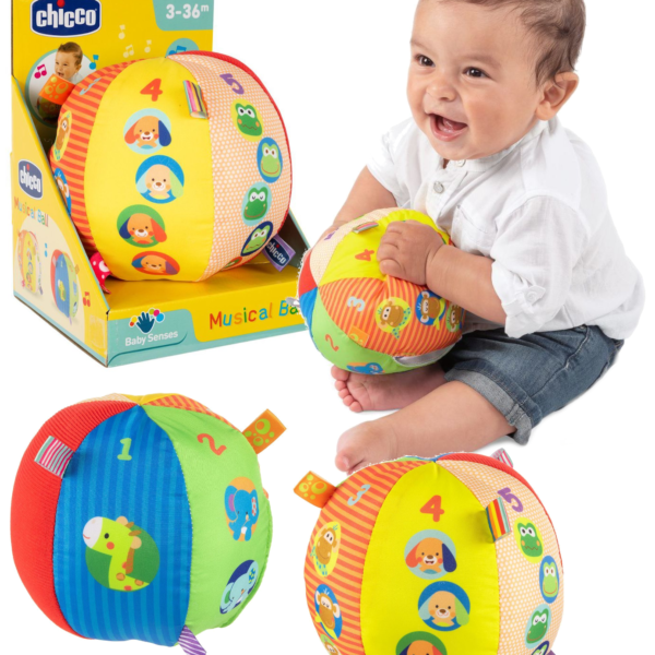 Pierwsza miękka piłeczka dla Malucha! Super miękka muzyczna piłka od Chicco wykonana jest z różnych tkanin, aby rozwinąć umiejętności dotykowe, koordynację manualną i stymulować pełzanie! Efekty dźwiękowe Gdy dziecko potrząśnie piłeczką i nią rzuci, aktywowuje melodie i inne efekty dźwiękowe! Piłeczka pomaga rozwijać umiejętności dotykowe i koordynację manualną oraz stymuluje dziecko do pełzania i raczkowania. Wszyte w zabawkę małe metki, które dzieci uwielbiają, pomagają dziecku łatwo je chwycić, a następnie rzucić lub potrząsnąć piłeczką. Dzięki piłce dziecko poznaje również pierwsze liczby. Informacje dodatkowe Zabawka zasilania na 2 baterie typu AAA (nie dołączone do zestawu) Po wyjęciu gniazda na baterie, zabawkę można prać w pralce Wymiary produktu: 15 x 15 x 15 cm Wymiary opakowania: 15,5 x 15 x 21 cm Zabawka przeznaczona dla dzieci powyżej 3 miesięcy. Chicco czyli wspieranie rodziców od 1958 roku Firma Chicco została założona w 1958 r. przez Pietra Catelli, który chciał uczcić narodziny swojego pierwszego syna Enrico, pieszczotliwie znanego jako „Chicco”. Stworzył markę specjalizującą się w produktach do pielęgnacji, która skierowana była dla dzieci od urodzenia do ukończenia 36 miesięcy. Tak narodziła się marka Chicco czyli lider na rynku światowym w produktach dla dzieci.