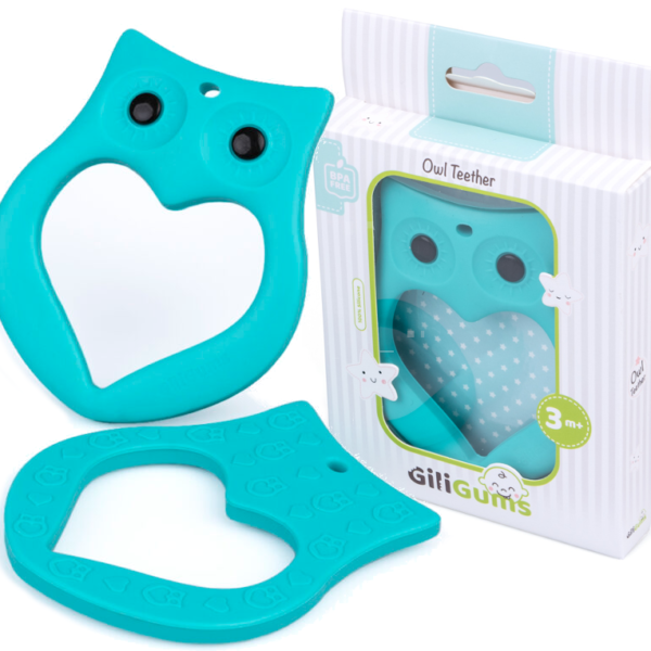GiliGums w trosce o Twojego malucha Giligums to ekskluzywne, silikonowe gryzaki stworzone z pasją, w trosce o komfort i bezpieczeństwo najmłodszych. Każdy z unikatowych kształtów wyróżnia się kolorem oraz zróżnicowaną fakturą z praktycznymi wypustkami, które masują obolałe dziąsła ząbkującego dziecka, przynosząc mu ulgę. Pięknie zapakowane gryzaki Giligums, będą wspaniałym prezentem dla każdego bobasa. Idealny podczas ząbkowania Silikonowy gryzaczek w kształcie sowy to piękna, i co ważniejsze, funkcjonalna zabawka dla ząbkującego malucha! Zróżnicowana faktura przyniesie ulgę obolałym dziąsełkom, a otwór w kształcie serduszka ułatwi małym rączkom chwytanie gryzaka. Cechy produktu: zróżnicowane faktury wypustki do masowania dziąseł dostosowany do małych rączek wykonany z silikonu wiek: 3m+ wymiary: 8,4 cm x 9,7 cm