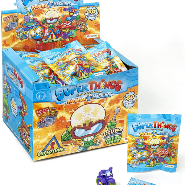 SERIA SUPERTHINGS JEST KONTYNUACJĄ KULTOWEJ SERII ZABAWEK SUPER ZINGS. JEST TO 7 SERIA W KTÓREJ GŁOWNYM MOTYWEM SĄ MASZYNY. ZBIERZ PONAD 80 NOWYCH FIGUREK. W nowej serii SuperThings, Power Machines(maszyny) przejęły kontrolę! Do zebrania jest ponad 80 nowych SuperThings. SuperThings to przedmioty codziennego użytku przekształcane w Superbohaterów i Superzłoczyńców. Każda saszetka zawiera figurkę i listę kontrolną, ponad 80 figurek do zebrania. Każdy SuperThing ma swojego rywala: znajdź pary rywali i zbuduj swoje super drużyny. Zestaw zawiera: 50 SZTUK SASZETEK SUPERTHINGS(50 LOSOWYCH FIGUREK) PRODUKT FABRYCZNIE ZAPAKOWANY(ORYGINALNIE WYSYŁANY W KARTONIE) Cechy: Znajdź srebrne i złote figurki oraz niezwykle rzadkiego doktora Volta, który świeci w ciemności! Ponad 80 nowych SuperThings do zebrania! Zbuduj własny superteam. producent - MagicBox Toys figurki z najnowszej serii 7 SuperThings Power Machines wysokość figurek to około 3 cm Produkt jest nowy, oryginalny i pochodzi z oficjalnej dystrybucji.