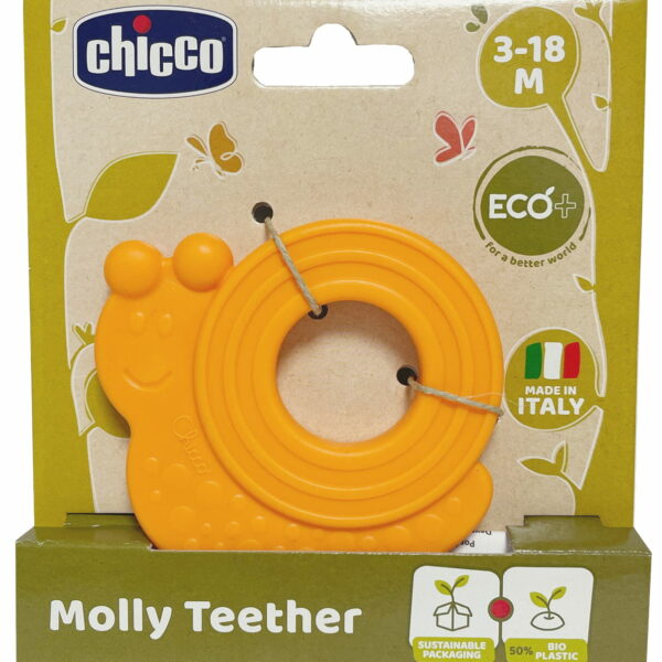 Stymulacja zmysłów Gryzak ślimak to lekki i łatwy do trzymania gryzaczek, idealny dla dzieci w pierwszych miesiącach życia. Ślimak to miękki gryzak, który doskonale łagodzi ból podczas ząbkowania. Zabawka wykonana z plastiku pochodzącego z recyklingu i z bioplastiku ze źródeł roślinnych! Dodatkowe informacje Gryzak ślimak jest częścią Chicco ECO+, zabawek wykonanych z plastiku pochodzącego z recyklingu oraz bioplastiku (w różnych procentach, w zależności od produktu), które są produkowane we Włoszech. Zabawki te zostały zaprojektowane tak, aby angażować dzieci w zabawę i pomóc im zrozumieć, jak powstają rzeczy i jak działają, gdy zostaną połączone. Opakowania zabawek nadają się do recyklingu, a części plastikowe zostały w nich ograniczone do minimum. Zabawki ECO+ mają dokładnie takie same wysokie standardy jakości jak każdy inny produkt Chicco, zarówno pod względem łatwości zabawy, jak i bezpieczeństwa produktu. Opakowanie eco - friendly Opakowania zabawek Chicco Eco+ nadają się do recyklingu, a czścigane plastikowe zostały w nich ograniczone do minimum. Chicco czyli wspieranie rodziców od 1958 roku Firma Chicco została założona w 1958 r. przez Pietra Catelli, który chciał uczcić narodziny swojego pierwszego syna Enrico, pieszczotliwie znanego jako „Chicco”. Stworzył markę specjalizującą się w produktach do pielęgnacji, która skierowana była dla dzieci od urodzenia do ukończenia 36 miesięcy. Tak narodziła się marka Chicco czyli lider na rynku światowym w produktach dla dzieci.
