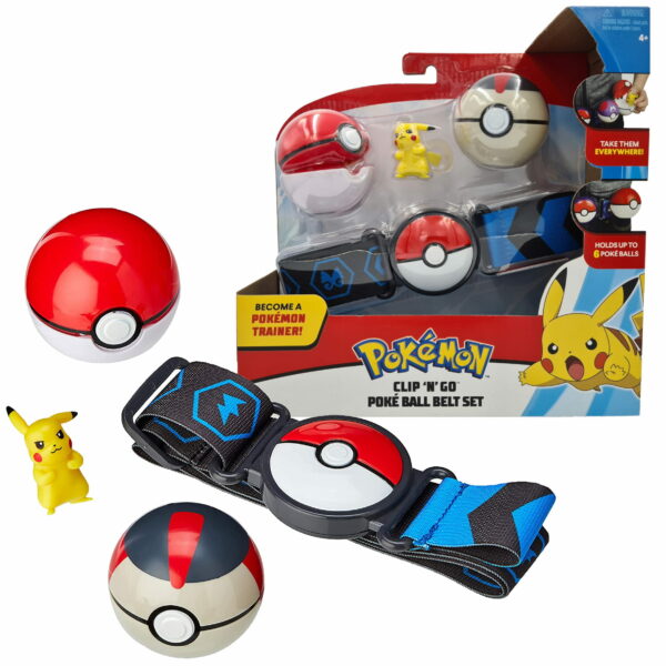 POKEMON ZESTAW FIGURKA PIKACHU PAS + 2 POKE BALL