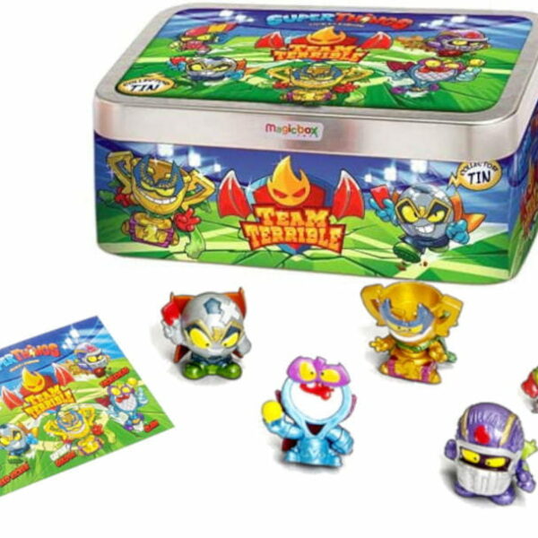 SERIA SUPERTHINGS JEST KONTYNUACJĄ KULTOWEJ SERII ZABAWEK SUPER ZINGS. JEST TO 8 SERIA "KAZOOM KIDS", ZBIERZ PONAD 80 NOWYCH FIGUREK. Zdobądź tę ekskluzywną puszkę Team Terrible, która zawiera bardzo wyjątkowe figurki w środku, z ekskluzywnymi wzorami inspirowanymi bardzo zróżnicowanymi sportami i gotowymi na niekończące się przygody. 5 superzłoczyńców, którzy tworzą drużynę Team Terrible, postrach wszystkich zawodów sportowych! W puszce możesz również przechowywać pozostałe figurki Superthings, idealne, aby zabrać je wszędzie i bawić się nimi. Odtwórz najbardziej epickie starcia w mieście Kaboom dzięki tym i pozostałym figurką. Zestaw zawiera : metalowa puszka 5x figurek SuperThings z metalicznym efektem: Kapitan Goldor, który myśli tylko o wygranej za wszelką cenę, Pani Pack to nieuchwytny as hokejowy Red Kicker, najbardziej oszukańczy złoczyńca w piłce nożnej Slam to szalony maniak tenisa Tacklehead jest nie do powstrzymania grając w piłkę nożną. Są najbardziej konkurencyjnymi złoczyńcami i zawsze są gotowi spróbować wygrać każdy mecz. Chociaż oczywiście nigdy nie będą grać fair! Cechy: Wszystkie 5 postaci ma metaliczne wykończenie i występuje wyłącznie w puszce. Wymiary puszki: 5,5 cm wysokości, 13,5 cm szerokości i 8,5 cm głębokości. Możesz używać puszki do transportu lub przechowywania ulubionych figurek Zbuduj własny superteam. producent - MagicBox Toys figurki z najnowszej serii 8 SuperThings Kazoom Kids wysokość figurek to około 3 cm Produkt jest nowy, oryginalny i pochodzi z oficjalnej dystrybucji.