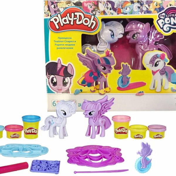 Kreatywna zabawa Play-Doh ciastolina to miękka masa plastyczna, dzięki której wszystkie dzieci mogą wyczarować, co tylko sobie wymarzą! W szerokiej gamie produktów każde dziecko znajdzie coś dla siebie. Zabawa z Play-Doh nigdy się nie nudzi! To jak się będzie bawiło dziecko zależy tylko od niego, co powoduje, że można odkrywać zabawę na nowo każdego dnia :) Zabawa ciastoliną Play-Doh rozwija: wyobraźnię kreatywność sprawność manualną Zabawka nieodpowiednia dla dzieci poniżej 3. roku życia. My Little Pony Stylowe kucyki Najnowszy zestaw od play-doh jest idealnym prezentem dla wszystkich fanów bajki My Little Pony Dzięki narzędziom dziecko może uformować dowolnie masę, a także wyciąć kształty związane z serią przy pomocy foremek dołączonych w zestawie. Zestaw zawiera: figurka Rarity figurka Twilight 6 pojemniczków z ciastoliną akcesoria tematyczne