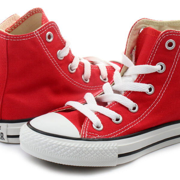 Klasyczne, wysokie trampki dla dzieci od marki Converse. Płócienna cholewka w czerwonym kolorze oraz tekstylne wnętrze. Białe sznurowadła pozwalają na pełne dopasowanie buta do tęgości stopy. Wulkanizowana, biała podeszwa z czarną lamówką doskonale amortyzuje stopę od podłoża oraz gwarantuje komfort użytkowania przez cały dzień. Bestseller marki Converse, zawsze niezawodny! Idealne podczas wiosennych oraz letnich zabaw na świeżym powietrzu, polecamy!