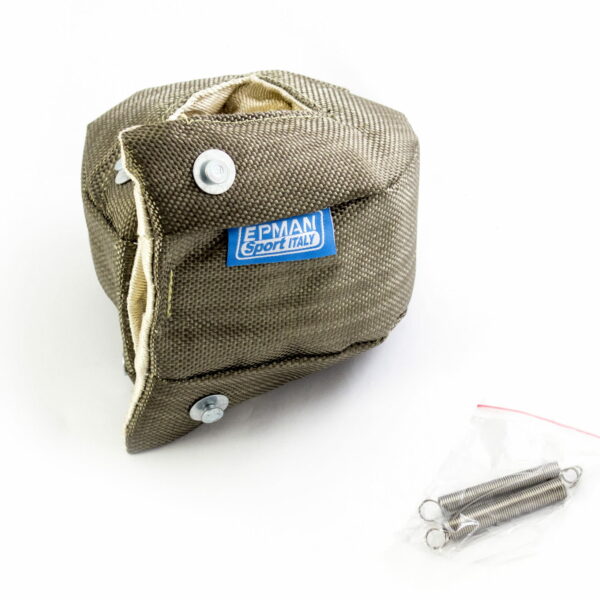 EPMAN Titanium T3 Turbo Blanket – Koc / osłona termiczna o odporności do 1093 st. Celsjusza Opis: Koc posiada dopasowany kształt do turbin T3, który rewelacyjnie zamyka ciepło w turbinie dzięki czemu zdecydowanie zwiększa się szybkość wydostawania spalin i zmniejsza się turbo-lag, jednocześnie znacznie redukując temperaturę maski. Doskonała bariera termiczna chroni maskę, węże, przewody i malowane powierzchnie przed uszkodzeniami spowodowanymi zbyt wysoką temperaturą. Turbiny wytwarzają ogromną ilość ciepła podczas pracy co również może wpływać na działanie zarówno elektroniki jak i może być przyczyną topienia się plastikowych elementów zabezpieczających elektronikę przed działaniem wody czy dostawaniem się pyłów. Koc termiczny jest najlepszym, najłatwiejszym w montażu i najtańszym sposobem, aby turbo nie wyrządziło szkody reszcie samochodu. Koc termiczny jest elementem uniwersalnym aczkolwiek dzięki odpowiedniemu ukształtowaniu pasuje do większości turbin T3. Wytrzymuje aż do 1010 st. C! Zestaw zawiera: 1x Koc / Osłonę termiczną Turbo 2x Sprężyny do mocowania osłony