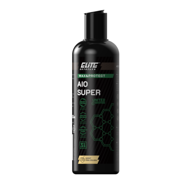 Elite Detailer AIO Super 500ml Innowacyjne AIO 3 in 1, zawiera cleaner, glaze i sealent. Czyści, maskuje drobne niedoskonałości i zabezpiecza lakier. Pozostawia trwała powłokę hydrofobową. Dzięki starannie wyselekcjonowanym składnikom, polerowanie i docieranie produktu jest proste i szybkie. Produkt nie pozostawia smug. Zapach: Pina ColadaPojemność: 500mlSposób aplikacji: aplikatorKonsystencja: Gotowy do użyciaSposób użycia: 1. Wstrząsnąć przed użyciem2. Nanieść na aplikator gąbkowy lub z mikrofibry3. Po 10 minutach wypracować powierzchnię mikrofibrą