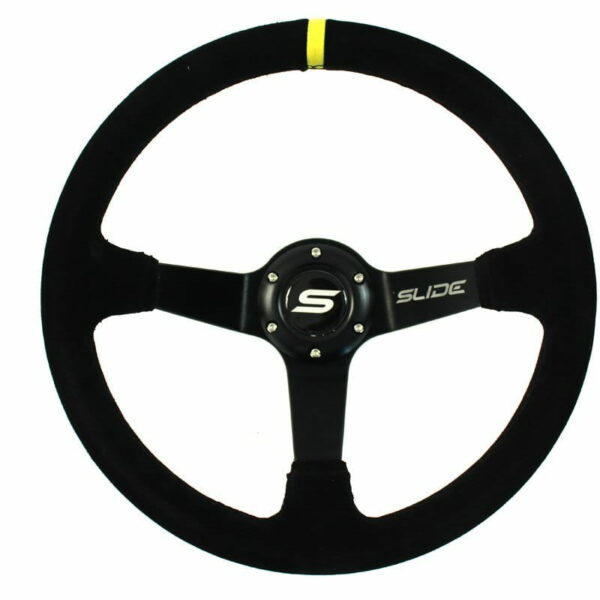 Slide Suede Steering Wheel Yellow Strip 350mm - Zamszowa kierownica sportowa Slide z odsadzeniem