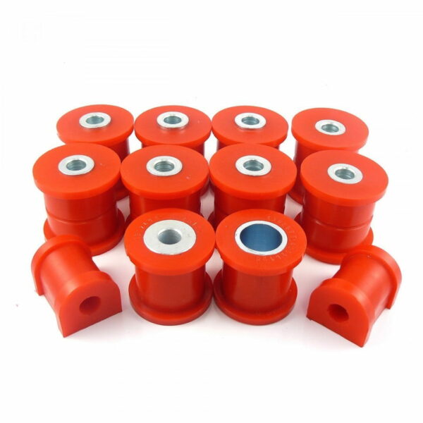 Czym są tuleje poliuretanowe? PU składa się z izocyjanianu i poliolu, które są wytwarzane z ropy naftowej. Połączenie tych dwóch substancji oraz dodanie kilku pomocniczych jak stabilizatory, katalizatory, środki spieniające wpływa na powstanie poliuretanu. Możemy regulować sztywność materiału za pomocą tych proporcji składników. Nasze zawieszenie narażone jest na różnego rodzaju obciążenia. Elementy z gumy z biegiem czasu kruszeją i ulegają uszkodzeniu. Dostępne średnice stabilizatora tylnego: 15mm, 17mm W skład zestawu wchodzą: - 1szt. Tuleja panhard przód/tył (do nadwozia)14mm - 1szt. Tuleja panhard przód/tył (do mostu)26mm - 2szt. Tuleja stabilizatora tylnego - 8szt. Tuleja wahacza tylnego (dolnego/górnego) Liczba zestawów potrzebna na samochód: 1Pasuje do:- Nissan Patrol Y60 1988-1997- Nissan Patrol Y61 1998-2000 Twardość: 80ShA lub 90ShA Kod produktu: 4302603