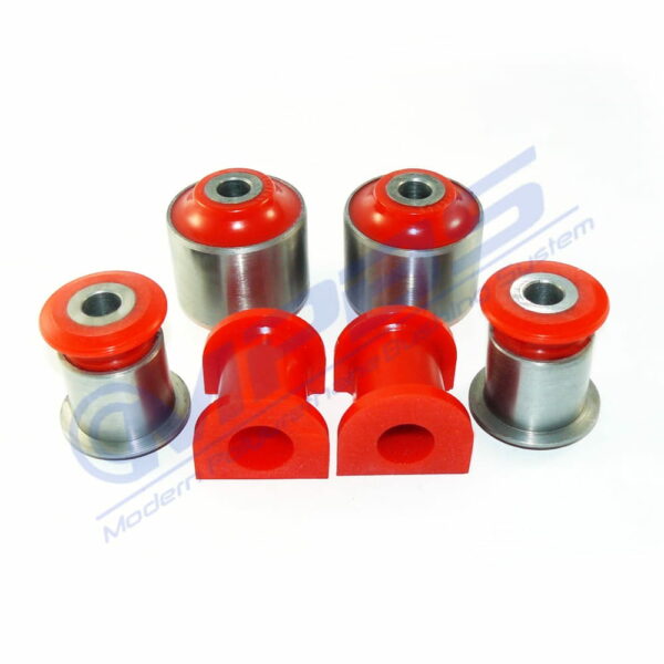Czym są tuleje poliuretanowe? PU składa się z izocyjanianu i poliolu, które są wytwarzane z ropy naftowej. Połączenie tych dwóch substancji oraz dodanie kilku pomocniczych jak stabilizatory, katalizatory, środki spieniające wpływa na powstanie poliuretanu. Możemy regulować sztywność materiału za pomocą tych proporcji składników. Nasze zawieszenie narażone jest na różnego rodzaju obciążenia. Elementy z gumy z biegiem czasu kruszeją i ulegają uszkodzeniu. Dostępne średnice stabilizatora przedniego: 21mm,22mm,23mm,24mm,26mm W skład zestawu wchodzi: - 2szt. Tuleja wahacza przedniego przednia - 2szt. Tuleja wahacza przedniego tylna - 2szt. Tuleja stabilizatora przedniegoLiczba zestawów potrzebna na samochód: 1Pasuje do:- VW Transporter T5 2003- Twardość: 80ShA lub 90ShA Kod produktu: 6505202