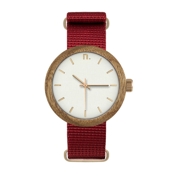 Rodzaj zegarka: DamskiPasek / bransoleta: NylonMechanizm: KwarcowyFunkcje: BrakKształt koperty: OkrągłaKolor tarczy: BiałyKolor paska: CzerwonyKolor koperty: BrązowyOpis tarczy: IndeksyMateriał wykonania: Drewno SapelliWodoszczelność: 3 ATMSzkło: Mineralne hartowaneKamienie: Bez kamieni
