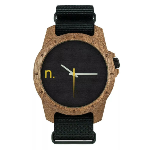 Rodzaj zegarka: MęskiPasek / bransoleta: PasekMechanizm: KwarcowyFunkcje: BrakKształt koperty: OkrągłaKolor tarczy: CzarnyKolor paska: CzarnyKolor koperty: BrązowyOpis tarczy: IndeksyMateriał wykonania: Drewno SapelliSzkło: Utwardzane mineralneKamienie: Bez kamieni