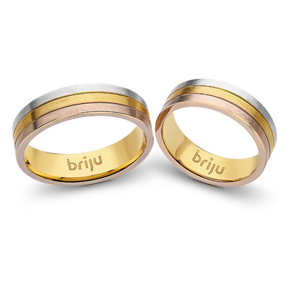 PARAMETRY OBRĄCZEK:Szerokość: 6 mm (należy do najczęściej wybieranych przez naszych Klientów)Grubość: 1,6 mmProfil: płaskiWykończenie: matowe szczotkowaneWażne: prezentowana cena tego modelu nie zawiera kamieni (cena obowiązuje dla gładkiej obrączki bez kamieni). Zdjęcie ma charakter poglądowy.Obrączki ślubne są jednym z najważniejszych elementów każdej uroczystości ślubnej. Wybieramy je na całe życie, nosząc na palcu jako symbol trwałego i szczęśliwego małżeństwa. Piękne trzykolorowe obrączki, wykonane z białego, żółtego i różowego złota, są cudownym zwieńczeniem nowo zawieranego związku. Wykonane z dobrego jakościowo złota (próba 585), gwarantują długowieczność i odpowiednią wytrzymałość.DLACZEGO WARTO DOKONAĆ ZAKUPU OBRĄCZEK U NAS:Próba złota 585 gwarantuje, że obrączki są bardzo trwałe i wytrzymałe przez wiele lat użytkowania,Trzykolorowe, płaskie obrączki o wyjątkowym wzorze, z matowym szczotkowanym wykończeniem przepięknie prezentują się na palcu i stanowią najpiękniejszą część c