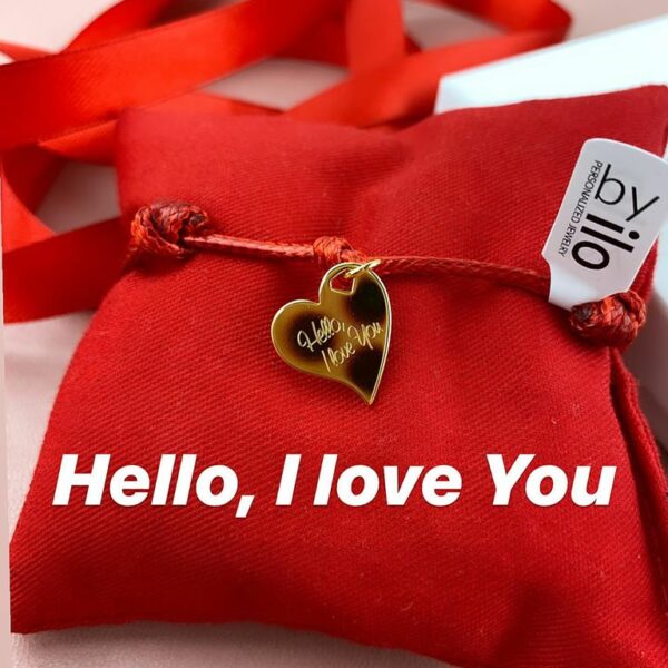 Personalizowana bransoletka sznurkowa z zawieszką w kształcie serduszka love drop z dowolna dedykacją.