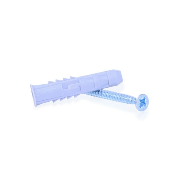 Kołek rozporowy KRX do podłoży pełnych z wkrętem z łbem stożkowym z gniazdem PZ.Cechy charakterystyczne:Gniazdo PZ umożliwia wkręcenie wkręta wieloma dostępnymi narzędziami.Ocynk galwaniczny - optymalne zabezpieczenie antykorozyjne dla zastosowań wewnętrznych.Powiększony kołnierz zapobiega przed zbyt głębokim osadzeniem koszulki w otworze.Specjalne wypustki tworzywowe klinują koszulkę w otworze, zapobiegając jej obrotowi podczas montażu.Specjalna konstrukcja listew rozpierających powoduje mocne zaklinowanie kołka i zapobiega jego przekręceniu po częściowym wkręceniu wkręta.Listwy prowadzące w wewnętrznej części koszulki gwarantują centryczne prowadzenie wkręta.Zastosowanie:Montaż drewnianych elementów wykończenia wnętrz, mocowanie listew przypodłogowych, montaż elementów wyposażenia domu, mocowanie korytek i wiązek kablowych.Beton.Beton komórkowy.Cegła ceramiczna pełna.Cegła silikatowa pełna.Parametry:Materiał korpusu: PolipropylenMateriał wkręta: StalPowłoka: Ocynk galwanicznyŚrednica: 8 mmŚrednica wkręta dw: 4 mmŚrednica korpusu dk: 8 mmŚrednica kołnierza korpusu Dk: 10 mmŚrednica łba wkręta Dw: 8 mmDługość korpusu Lk: 40 mmDługość wkręta Lw: 50 mmTyp gniazda wkręta: PZ-2Typ łba wkręta: StożkowyŚrednica otworu/wiertła do: 8 mmGłębokość otworu montażowego ho: 50 mmMaks. grubość mocowanego elementu tfix max: 5 mmMin. grubość podłoża - beton hmin: 60 mmMin. grubość podłoża - cegła hmin: 60 mmMin. odległość od krawędzi - cegła cmin: 80 mmMin. odległość osiowa (miedzy łacznikami) - cegła Smin: 120 mm Min. odległość osiowa (miedzy łacznikami) - beton Smin: 80 mmNośność - wyrywanie CEGŁA CERAMICZNA PEŁNA: 0,1Nośność - wyrywanie CEGŁA SILIKATOWA PEŁNA: 0,1Nazwa wyrobu wg AT (tylko znak B): Tworzywowo-metalowe łączniki rozporowe