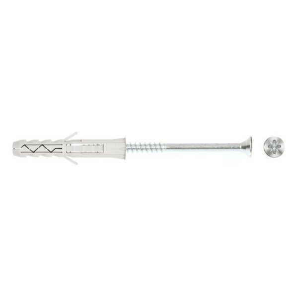 Kołki rozporowe z wkrętem 5x50 ocynk 100szt.Parametry podstawowe produktuŚrednica [mm]: 8Materiał: Polipropylen / StalWymiary korpusu Lk x dk [mm]: 8 x 50Średnica korpusu dk [mm]: 8Średnica kołnierza korpusu Dk [mm]: 10Długość korpusu Lk [mm]: 50Materiał korpusu: PolipropylenWymiary wkręta / śruby / trzpienia dw x Lw [mm]: 5 x 50Średnica wkręta / śruby / trzpienia dw [mm]: 5Długość wkręta / śruby / trzpienia Lw [mm]: 50Materiał wkręta / śruby / trzpienia / gwoździa: StalGrubość powłoki ochronnej [µm]: 5Typ łba wkręta / śruby / trzpienia: StożkowyTyp gniazda wkręta / śruby / trzpienia: PZ-2Średnica łba wkręta / śruby / trzpienia Dw [mm]: 10Parametry montażowePodłoża: Beton, Beton komórkowy, Cegła ceramiczna pełna, Cegła silikatowa pełnaŚrednica otworu/wiertła do [mm]: 8Głębokość otworu montażowego ho [mm]: 60Maks. grubość mocowanego elementu tfix max [mm]: 1Nazwa wyrobu wg AT (tylko znak B): Tworzywowo-metalowe łączniki rozporowePowłoka: Ocynk galwanicznyCechy i korzyściZaleta 1: Specjalne wypustki tworzywowe klinują koszulkę w otworze, zapobiegając jej obrotowi podczas montażuZaleta 2: Specjalna konstrukcja listew rozpierających powoduje mocne zaklinowanie kołka i zapobiega jego przekręceniu po częściowym wkręceniu wkrętaZaleta 3: Listwy prowadzące w wewnętrznej części koszulki gwarantują centryczne prowadzenie wkrętaZaleta 4: Powiększony kołnierz zapobiega przed zbyt głebokim osadzeniem koszulki w otworzeZaleta 5: Ocynk galwaniczny - optymalne zabezpiecznie antykorozyjne dla zastosowań wewnętrznychZaleta 6: Gniazdo PZ umożliwia wkręcenie wkręta wieloma dostępnymi narzędziamiParametry techniczne / montażowe pozostałeMin. grubość podłoża - beton hmin [mm]: 75Nośność charakt. - wyrywanie BETON C16/20: 0,1Nośność charakt. - wyrywanie BETON C50/60: 0,1Min. odległość osiowa (miedzy łacznikami) - beton Smin [mm]: 100Nośność charakt. - wyrywanie CEGŁA CERAMICZNA PEŁNA: 0,3Min. grubość podłoża - cegła hmin [mm]: 75Min. odległość od krawędzi - cegła cmin [mm]: 100Min. odległość osiowa (miedzy łacznikami) - cegla Smin [mm]: 150Nośność charakt. - wyrywanie CEGŁA SILIKATOWA PEŁNA: 0,2